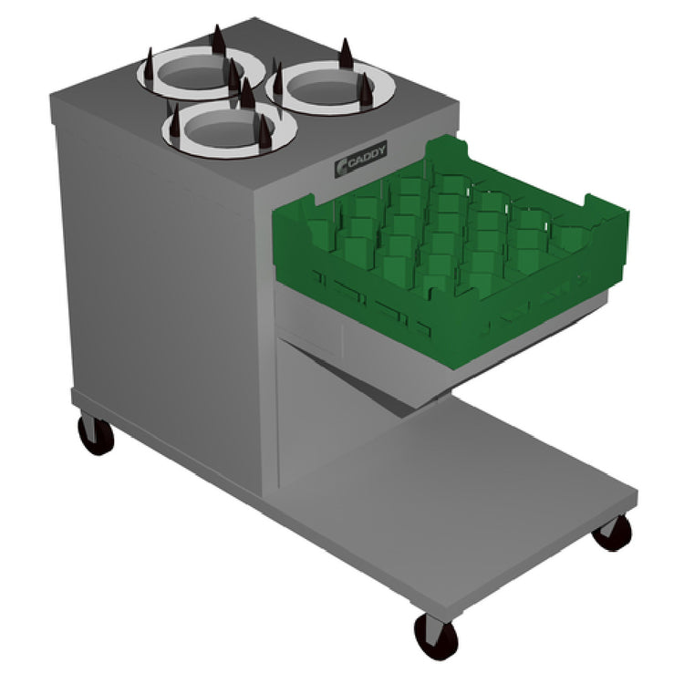 The Caddy CM-2720-C-20 Caddy Magic Cup/Saucer Rack Dispenser Cantilever Unheated is a versatile and efficient solution for organizing and dispensing cups and saucers in busy food service environments. This cantilever-style dispenser is specifically designed to accommodate 20-inch by 20-inch racks, boasting a substantial capacity that can hold up to 140 cups and 210 saucers, ranging in diameter from 5-7/8 inches to 7-1/4 inches. Its self-leveling platform ensures effortless access and organization, while the inclusion of three adjustable cylinder dispensers allows for customization to suit varying operational needs. The Caddy Magic is constructed with durable stainless steel, ensuring longevity and ease of maintenance. Additionally, it is equipped with 4-inch swivel casters, providing mobility and flexibility within your workspace. Recognized with the NSF certification, this unheated dispenser meets stringent public health and safety standards, making it an ideal choice for cafeterias, hotels, and catering businesses that demand high efficiency and reliability. The Caddy CM-2720-C-20 stands out for its combination of capacity, adaptability, and resilient construction, offering a practical and space-efficient solution for establishments requiring organized cup and saucer storage and dispensing.