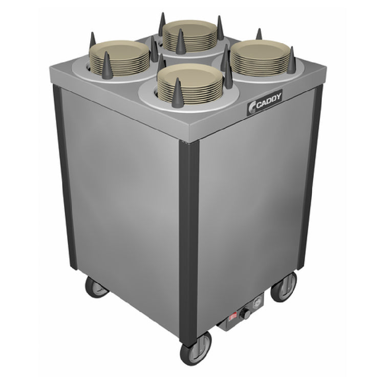 The Caddy CM-S-204-H Caddy Magic Dish Dispenser Cabinet Style Heated is an advanced solution for efficient dish management in food service environments. This unit features four self-leveling adjustable dispensing cylinders, accommodating dish sizes from 5-7/8 inches to 7-1/4 inches in diameter, making it versatile for various dining setups. The cabinet style housing is constructed with a stainless steel top, ensuring durability and a professional aesthetic. For enhanced protection and longevity, the unit includes plastic corner bumpers. An integrated stainless steel electric control box simplifies operation, further supported by a convenient on/off switch. Mobility is facilitated by 4-inch swivel casters, two of which are equipped with brakes for secure positioning. Adhering to safety and sanitation standards, the Caddy CM-S-204-H is both ETLus and NSF certified. This heated dispenser cabinet is particularly beneficial for high-volume dining facilities requiring quick and organized access to dishware, while maintaining optimal temperature control. Its robust construction and flexible design make it a critical component for efficient service in restaurants, hotels, and catering services, enhancing workflow efficiency and ensuring a seamless dining experience. The Caddy CM-S-204-H is designed to meet the rigorous demands of the food service industry with reliability and functionality.