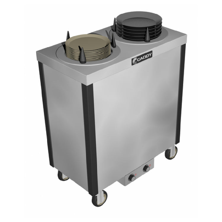 The Caddy CM-S-302-SHC Caddy Magic Dish Dispenser Cabinet Style Combo Heater is a meticulously designed unit, tailored for efficiency and convenience in high-demand environments such as commercial kitchens and catering services. This versatile unit features two self-leveling adjustable dispensing cylinders, capable of accommodating dishes up to 9-1/4 inches in diameter, ensuring seamless service operations. The integration of a stainless steel top enhances durability and provides a sleek finish, while plastic corner bumpers offer added protection against accidental impacts. A stainless steel electric control box accompanies the unit, equipped with an accessible on/off switch for straightforward operation. Mobility is a key feature, facilitated by 4-inch swivel casters, two of which include brakes for stability when needed. This product meets the stringent standards of the ETLus and NSF certifications, underscoring its commitment to quality and safety. Designed for versatility, the Caddy CM-S-302-SHC is ideal for establishments seeking efficient dish dispensing solutions combined with reliable heating capabilities, making it a valuable asset in any foodservice setting.