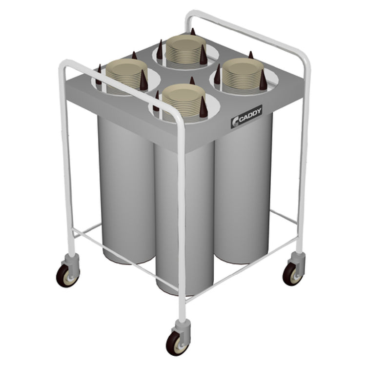 The Caddy CM-T-104 Caddy Magic Dish Dispenser Open Style Unheated is an innovative equipment designed for efficient dish management in various food service environments. This versatile unit features four self-leveling adjustable dispensing cylinders, accommodating dish sizes from 0 to 5-3/4 inches in diameter, ensuring compatibility with a wide range of dishware. The dispenser is constructed with a reinforced stainless steel top, providing durability and resistance to wear and tear, making it ideal for high-volume settings. Its welded stainless steel tubular frame offers structural integrity and longevity, ensuring consistent performance over time. Equipped with 4-inch swivel casters, the dispenser can be easily maneuvered, enhancing operational flexibility within kitchens or catering settings. Certified by NSF, this product meets stringent public health and safety standards, affirming its suitability for use in professional food service operations. The unheated design of the Caddy CM-T-104 emphasizes its efficiency in non-heated dish dispensing scenarios, catering to specific operational needs where maintaining temperature is not necessary. With its robust construction and thoughtful design, this dispenser is a reliable asset for businesses aiming to streamline their dish-handling processes in a cost-effective and hygienic manner.