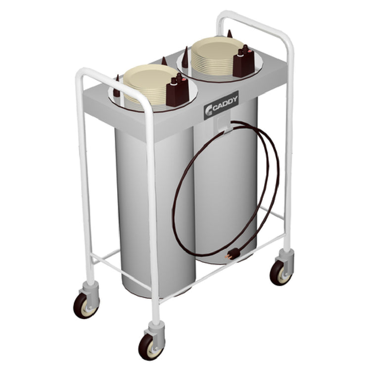 The Caddy CM-T-202-H Caddy Magic Dish Dispenser Open Style Heated is an advanced solution for efficient dish management in professional food service environments. This dispenser features two self-leveling adjustable dispensing cylinders designed for dish sizes ranging from 5-7/8 inches to 7-1/4 inches in diameter, making it versatile for various dining needs. Constructed with a reinforced stainless steel top and a robust welded stainless steel tubular frame, it ensures durability and reliability in high-demand settings. The stainless steel electrical box houses an on/off switch and an adjustable thermostat, allowing for precise temperature control, essential for maintaining dish warmth. Equipped with 4-inch swivel casters, including two with brakes, mobility and stability are easily managed within any kitchen layout. Operating at 120 volts, 8.3 amps, and delivering 1000 watts of heating power, it is suited for standard electrical setups with a NEMA 5-15P plug configuration. Certified by ETLus and NSF, this product meets rigorous safety and sanitation standards. The Caddy CM-T-202-H is an invaluable asset for restaurants, catering services, and institutional kitchens, offering seamless integration into diverse operational settings and ensuring dishes are consistently dispensed at optimal temperatures, enhancing overall service efficiency and customer satisfaction.