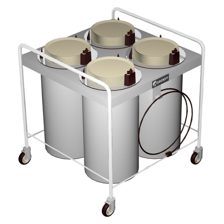 The Caddy CM-T-504-H Caddy Magic Dish Dispenser Open Style Heated is a sophisticated solution for efficient dish management, specifically designed for professional kitchens. This unit features four self-leveling adjustable dispensing cylinders that accommodate dish sizes ranging from 10-1/4 inches to 12 inches in diameter, offering flexibility for various dining settings. Constructed with a reinforced stainless steel top and a welded stainless steel tubular frame, it ensures durability and long-term use. The stainless steel electric box houses essential controls, including an on/off switch and an adjustable thermostat, allowing precise temperature management. This dispenser operates on a 120v/60/1-ph electrical system, drawing 21.6 amps and 2600 watts of power, and is equipped with a NEMA 5-30P plug. Mobility is facilitated by four 4-inch swivel casters, two of which have brakes for secure placement. Recognized for its adherence to safety and sanitation standards, the Caddy CM-T-504-H is ETLus and NSF certified. This product is an invaluable asset for culinary professionals seeking efficient, reliable, and adaptable dish dispensing solutions within hospitality, catering, or large-scale food service environments.