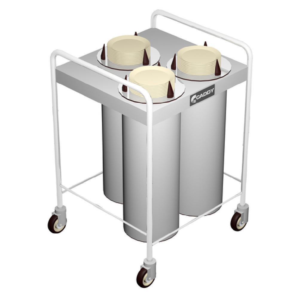 The Caddy CM-TQ-203 Caddy Magic Dish Dispenser is a versatile, open-style, unheated unit designed for efficient dish handling in commercial settings. It features three self-leveling, adjustable dispensing cylinders, accommodating dish sizes ranging from 5-7/8 inches to 7-1/4 inches in diameter. This functionality makes it ideal for food service operations that require quick and organized dish dispensing. The dispenser is constructed with a reinforced stainless steel top, offering durability and resistance to wear in high-traffic environments. Its welded stainless steel tubular frame ensures robust structural integrity, supporting consistent performance over time. Mobility is facilitated by 4-inch swivel casters, allowing for easy movement across diverse kitchen layouts. The Caddy CM-TQ-203 is NSF certified, affirming its compliance with rigorous public health and safety standards. This dish dispenser is particularly suited for restaurants, catering services, and institutional kitchens where efficient dish distribution is essential. Its open-style design and adjustable cylinders provide flexibility, catering to various dish sizes and ensuring seamless integration into existing workflows. This makes the Caddy CM-TQ-203 a practical choice for professionals seeking a reliable and adaptable dish dispensing solution in their operations.
