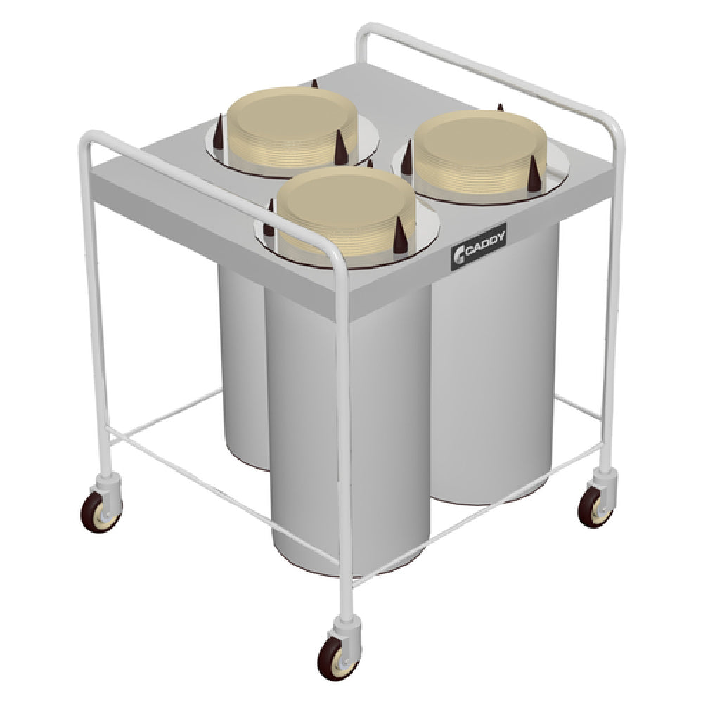 The Caddy CM-TQ-403 Caddy Magic Dish Dispenser Open Style Unheated is a highly efficient and versatile solution for food service operations requiring organized dish storage and dispensing. This unit features a staggered design with three self-leveling adjustable dispensing cylinders, accommodating dish sizes ranging from 9-5/8 inches to 10-1/8 inches in diameter. Constructed with a reinforced stainless steel top and a welded stainless steel tubular frame, this dispenser ensures long-lasting durability and reliability in demanding environments. It is equipped with 4-inch swivel casters, providing effortless mobility and flexibility in various kitchen settings. The open-style design makes it easier to access dishes, enhancing operational efficiency. Although unheated, the Caddy CM-TQ-403 is designed to maintain structural integrity and withstand the rigors of daily use in commercial kitchens. This product is NSF certified, which signifies compliance with public health and safety standards. The Caddy CM-TQ-403 is an ideal choice for restaurants, catering services, and other food service establishments looking to streamline their dish dispensing processes while maintaining a high standard of hygiene and efficiency.