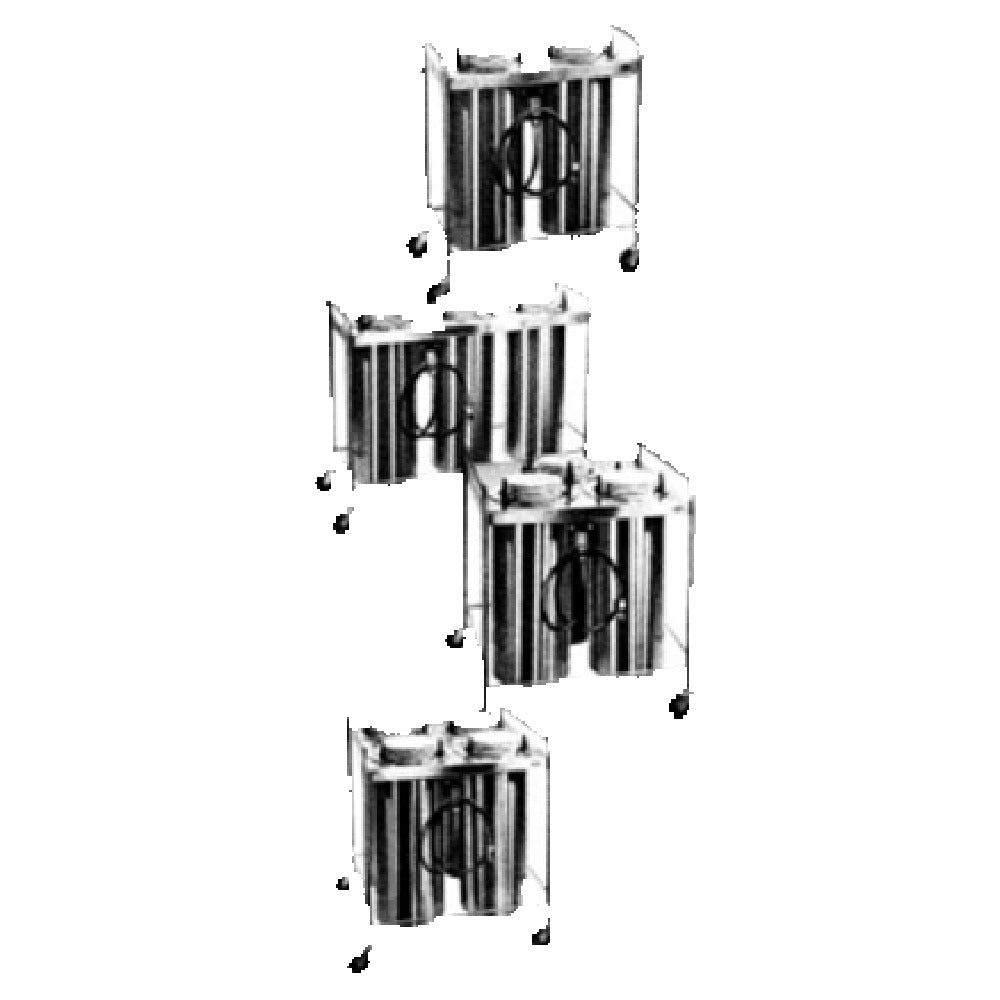 The Caddy CM-TQ-403-H Caddy Magic Dish Dispenser Open Style Heated is an advanced dish dispensing solution tailored for diverse industry needs. It features a staggered design with three self-leveling adjustable dispensing cylinders, accommodating dish sizes from 9-5/8 inches to 10-1/8 inches in diameter. Constructed with a reinforced stainless steel top and a welded stainless steel tubular frame, this dispenser ensures durability and longevity. The stainless steel electric box is equipped with an on-off switch and an adjustable thermostat, providing precise control over the heating mechanism. Designed for mobility, it includes 4-inch swivel casters, two of which come with brakes, facilitating secure positioning and easy transportation. Operating at 120 volts, with a power consumption of 12.5 amps and 1500 watts, it is compatible with a NEMA 5-15P plug type. Certified by ETLus and NSF, the Caddy CM-TQ-403-H guarantees compliance with stringent safety and sanitation standards. This dispenser’s open style and heated functionality make it an invaluable tool for environments demanding efficient and reliable dish management. Its thoughtful design and robust features cater to a variety of market segments within the food service industry, providing a seamless integration into professional kitchens.