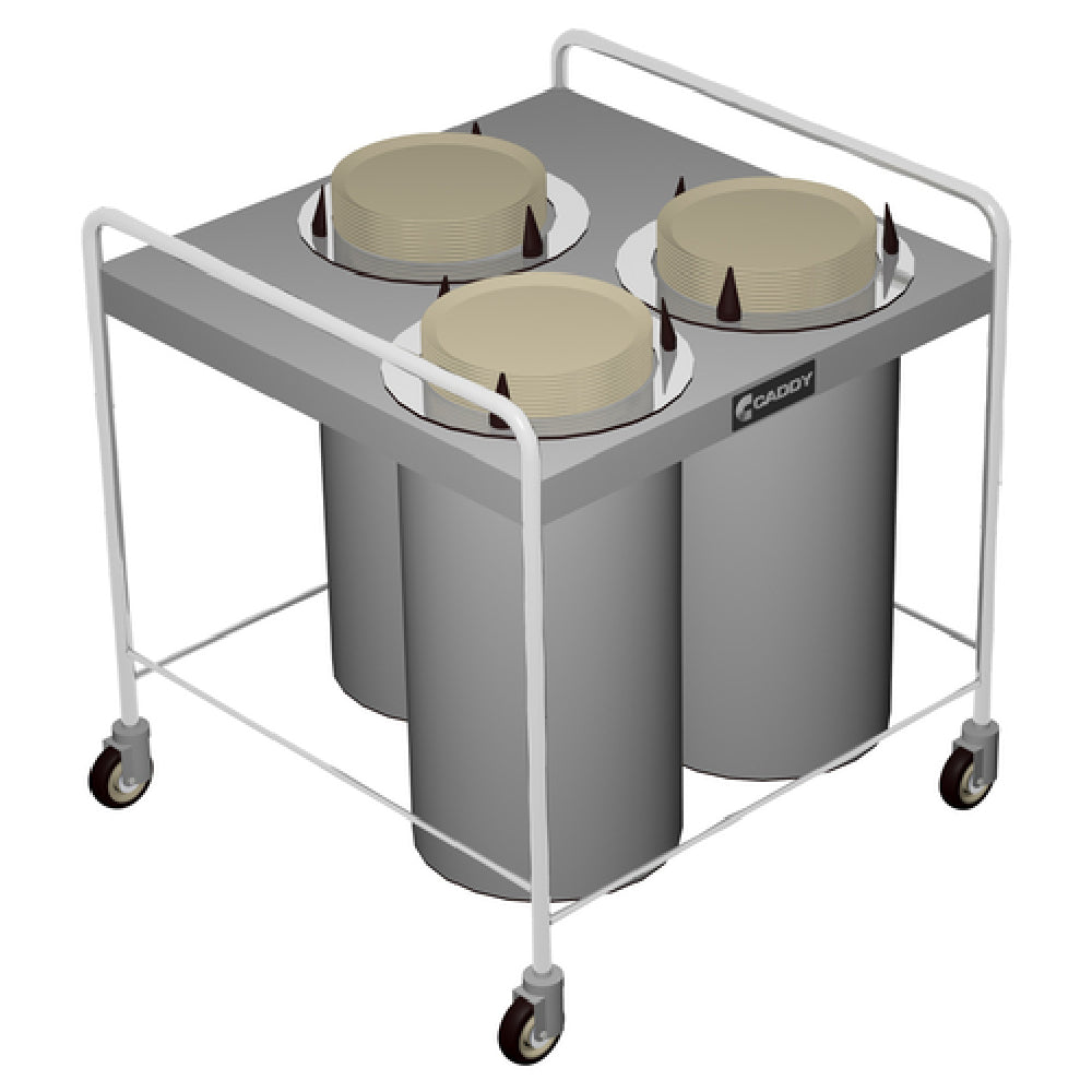 The Caddy CM-TQ-503 Caddy Magic Dish Dispenser Open Style Unheated is an advanced dish dispensing solution designed for efficiency and reliability in commercial kitchen environments. This unit features an open style, unheated configuration tailored for operations focusing on ambient storage and quick access to dishware. It is equipped with three self-leveling adjustable dispensing cylinders, accommodating a dish size range of 10-1/4 inches to 12 inches diameter, making it versatile for various serving needs. The dispenser is constructed with a reinforced stainless steel top for enhanced durability and a welded stainless steel tubular frame that ensures long-lasting performance. Mobility is facilitated by 4-inch swivel casters, allowing for easy repositioning within bustling kitchens. The staggered design of the dispensing cylinders optimizes space usage and accessibility, while the NSF certification signifies adherence to public health and safety standards. The Caddy CM-TQ-503 is an ideal choice for restaurants, catering services, and institutional dining facilities seeking a robust, efficient, and adaptable dish dispensing solution that meets the rigorous demands of high-volume service environments.