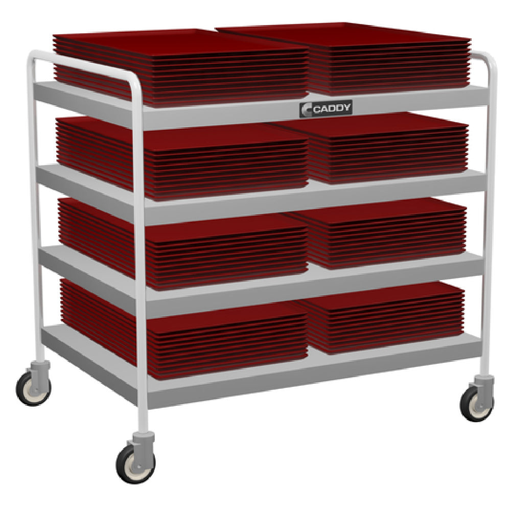 The Caddy T-204-B "B" Series Utility Caddy is a versatile and robust utility solution designed to meet the demands of various industry sectors. With dimensions of 38-1/2"W x 22-1/2"D x 39-1/2"H, this caddy features an open base structure for easy access and improved efficiency. It is equipped with four shelves that have notched corners, each shelf measuring approximately 36" x 24", providing ample storage space for various items. The shelves have a clearance of 8-1/4", which allows for storage of items of varying heights. Engineered with stainless steel construction, the caddy promises durability and long-lasting performance. It also includes two U-shaped handles, enhancing maneuverability and ease of use. The mobility of the Caddy T-204-B is further supported by its 4" polyurethane swivel casters, which ensure smooth movement and flexibility in tight spaces. This utility caddy is NSF certified, guaranteeing compliance with health and safety standards, making it an excellent choice for settings where hygiene is a priority. Its durable build and efficient design make it suitable for environments such as healthcare facilities, commercial kitchens, and storage areas, where reliable and versatile equipment is essential.