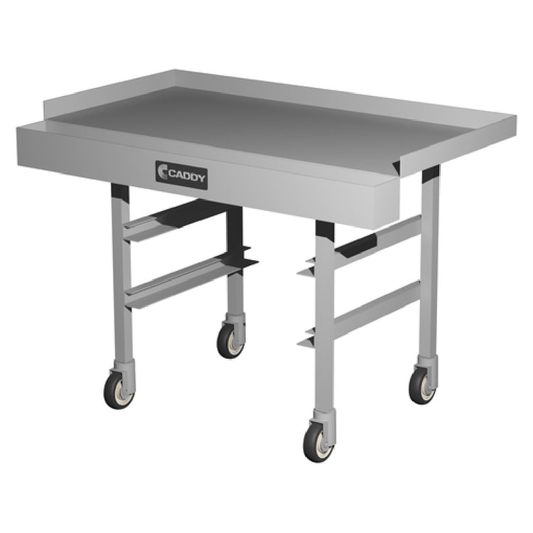 The Caddy T-239 Silver Sorting Caddy is a highly functional and durable mobile unit, designed to enhance organizational efficiency in food service and industrial environments. With dimensions of 42"W x 26-1/2"D x 35-7/8"H, this caddy offers ample space for sorting and transporting items. Its three sides are turned up 2", providing secure containment for the contents. The caddy features a trough measuring 4"D x 4-1/2"W, specifically designed to accommodate up to three 20" x 20" racks, ensuring optimal space utilization for various operational needs. Constructed from high-quality stainless steel, the Caddy T-239 promises longevity and robust performance, making it an ideal choice for demanding settings. For mobility, the caddy is equipped with 5" heavy-duty swivel casters, allowing for smooth and effortless movement across different surfaces. Additionally, this product is UL and NSF certified, attesting to its compliance with industry standards for safety and sanitation. The Caddy T-239 Silver Sorting Caddy is a practical solution for businesses seeking reliable and efficient equipment to streamline their processes, whether in hospitality or other industries requiring organized transportation of items.