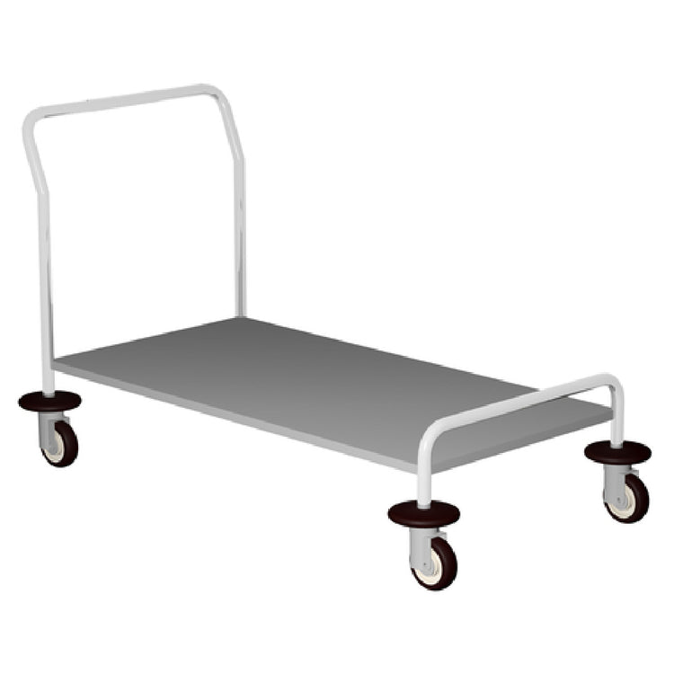 The Caddy T-25 Platform Caddy For Racks Double Tray Stack Platform Style is a high-quality, specialized equipment designed for efficient transportation and storage in various industry settings. Featuring a double tray stack and platform style, it offers a generous 26-1/2" x 47-1/2" platform, making it ideal for handling 20" x 20" trays. It is engineered with welded corner supports and constructed from durable stainless steel, ensuring long-lasting performance and resistance to corrosion. The Caddy T-25 is equipped with a 29-1/4"H handle for easy maneuverability, complemented by 4" swivel casters that enhance its mobility in tight spaces. This platform caddy also includes four circular leg bumpers, providing additional protection and stability during transport. Its design adheres to the stringent standards of NSF certification, highlighting its commitment to safety and hygiene. The Caddy T-25 is an essential asset across various sectors, from commercial kitchens to industrial storage facilities, where efficient and reliable tray handling is crucial. Its robust construction and thoughtful design make it a versatile solution for professionals seeking to optimize their operational workflows and maintain high standards of cleanliness and efficiency.