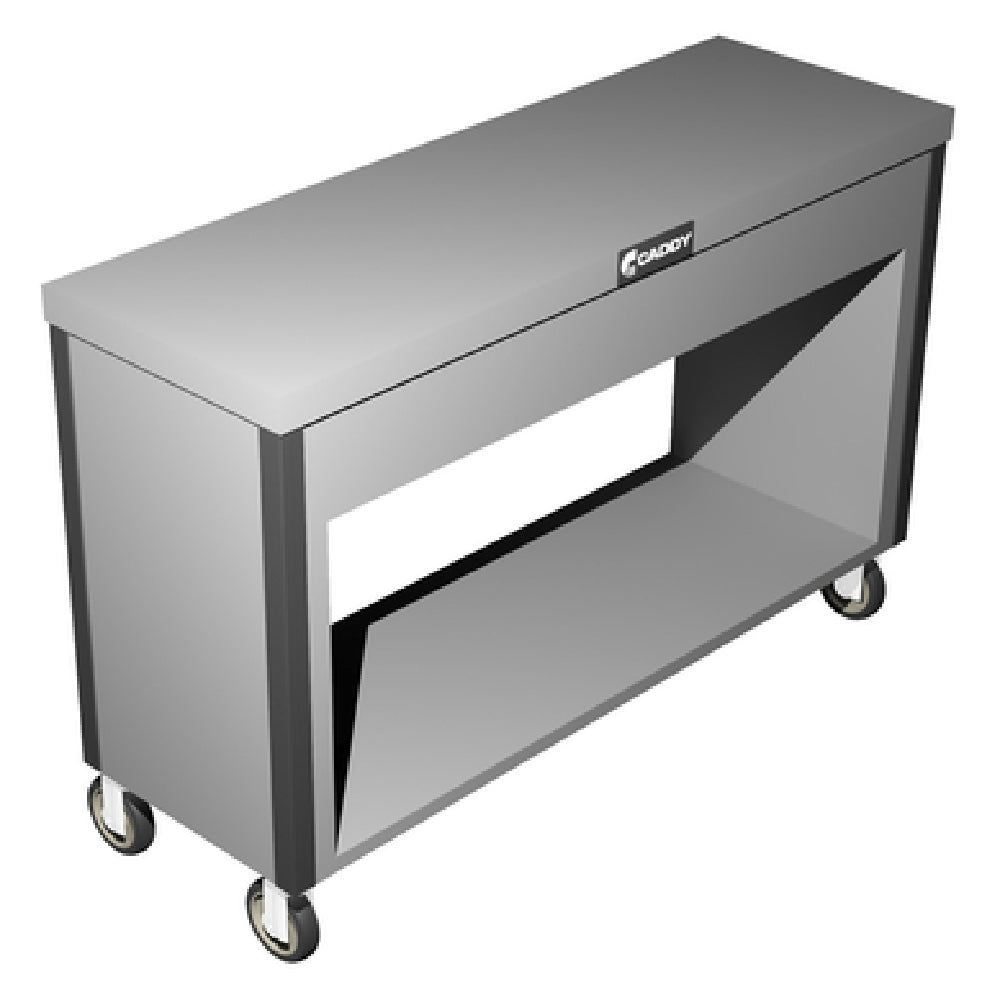 The Caddy TF-610 Utility Make-Up Table Slimline Mobile is an expertly crafted piece of equipment designed to meet the diverse demands of the beauty and cosmetics industry. With dimensions of 53-1/4"W x 18"D x 34"H, this table offers a sleek and compact solution for spaces where room is at a premium. The open cabinet base provides easy access to stored items, while the solid top shelf offers a sturdy work surface. The reinforced undershelf enhances the table’s structural integrity, ensuring durability and long-term use. Constructed from high-quality stainless steel, the table is resistant to corrosion and easy to clean, making it ideal for salons and beauty parlors. Equipped with 4" swivel casters, including two with brakes, this table guarantees smooth mobility and secure positioning as needed. Plastic vertical bumpers add an extra layer of protection against accidental impacts, preserving the table’s aesthetics and functionality. NSF certification assures compliance with public health standards, making the Caddy TF-610 a reliable choice for professionals seeking a mobile and efficient make-up table solution. Its thoughtful engineering and robust construction cater to a wide range of applications, ensuring it is a valuable asset in any professional beauty setting.
