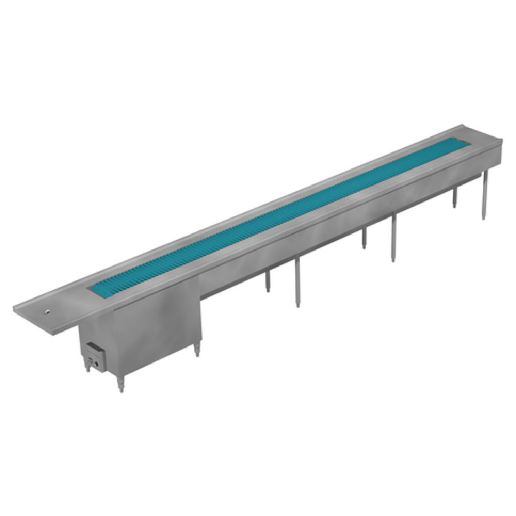 The Caddy TR-10 Tray Make-Up Conveyor is a versatile and customizable solution for efficient tray handling in various food service environments. Engineered with a custom length per specification and variable speed capabilities, this conveyor adapts seamlessly to diverse operational needs. Featuring a robust Caddyflex belt, it ensures reliable performance and smooth tray movement. Designed to accommodate trays up to 17 inches wide, users are advised to provide exact tray size specifications to optimize functionality. The inclusion of a limit switch and skirting enhances operational safety and precision. Constructed with a stainless steel bed and legs, this conveyor offers durability and stability, complemented by adjustable bullet feet for easy leveling on uneven surfaces. Powered by a 1/4 HP motor, it delivers consistent performance while maintaining energy efficiency. The Caddy TR-10 is ETLus and NSF certified, underscoring its compliance with industry safety and sanitation standards. This conveyor is ideal for institutional kitchens, catering services, and other high-volume food service operations, where customization and reliability are paramount. Its thoughtful design and robust features make it a valuable asset for efficient, streamlined tray management across various market segments.
