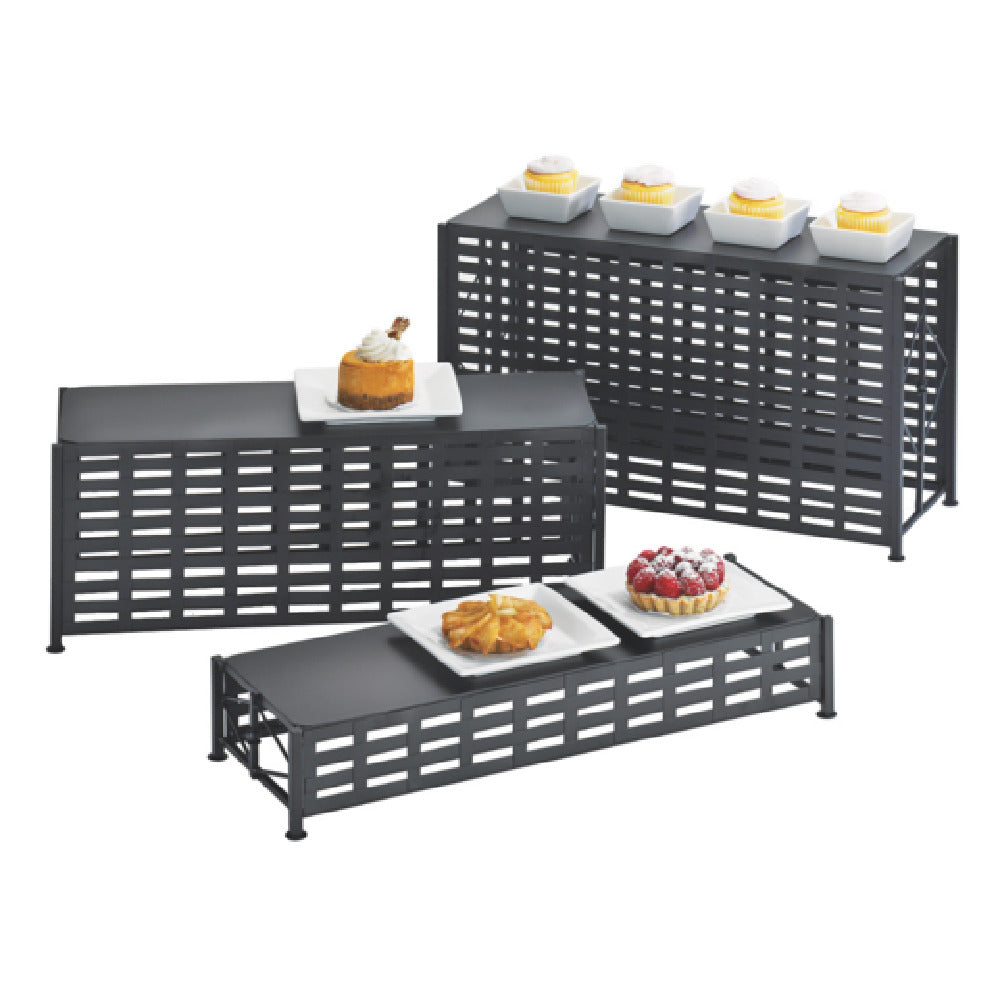 The Cal Mil 1247-11 Iron Collection Riser is a versatile display accessory designed for enhancing presentation aesthetics in a wide range of industry settings. This riser measures 21 inches in width, 7-1/2 inches in depth, and stands 11-1/2 inches tall, making it an ideal solution for showcasing various items with a touch of elegance. Its size and dimensions are specifically crafted to provide an elevated platform, adding a dynamic visual layer to any display arrangement. Constructed from durable materials, this piece is part of the renowned Iron Collection, known for its strength and durability. The riser serves a crucial role in food service settings, retail displays, and event presentations, allowing for a sophisticated presentation of products, whether they're culinary masterpieces in a buffet setting or retail items in a boutique. Its robust construction ensures it can support a variety of items securely, making it an essential tool for professionals seeking to maximize space and impact in their displays. The Cal Mil 1247-11 not only contributes to the organization and efficiency of display environments but also enhances the overall aesthetic appeal, making it a valuable addition to any professional presentation arsenal.