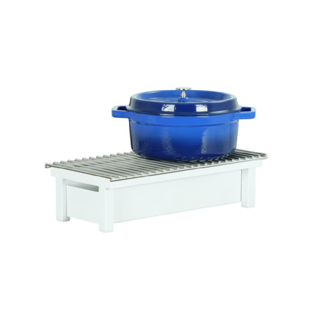 The Cal Mil 1348-22-15 Juno Chafer Alternative is constructed from durable white metal, measuring 19.75 inches in width, 10 inches in depth, and 4 inches in height. This innovative product includes a wire grill and a fuel cell rail equipped with a wind guard, making it a versatile and practical choice for various segments within the hospitality and catering industry. Designed to provide an efficient heating solution, the Juno Chafer Alternative ensures food is kept at optimal serving temperature, enhancing guest experiences at events and buffets. Its sleek white metal construction not only ensures longevity but also provides a modern aesthetic that complements any event decor or buffet setting. The integrated wind guard is particularly valuable for outdoor events, protecting the fuel cell from gusts and ensuring consistent performance. This product addresses the need for a stylish yet functional chafing solution, making it an ideal choice for event planners, caterers, and hospitality professionals seeking reliable and aesthetically pleasing equipment. Its thoughtful design and attention to detail underline its suitability for both small-scale events and larger catering operations.