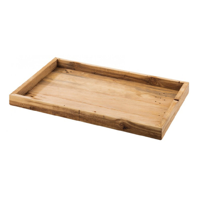 The Cal Mil 1367-12-99 Madera Tray is meticulously crafted with dimensions measuring 19-1/4"W x 11-3/4"D x 1-1/4"H, offering a rectangular silhouette that harmonizes rustic charm with modern utility. Constructed from rustic pine, this tray embodies a natural elegance ideal for a variety of industry segments, including hospitality, catering, and retail displays. Its substantial size makes it perfect for presenting an array of items, from artisanal baked goods to decorative arrangements. The tray's robust construction ensures durability, catering to high-traffic environments where both aesthetics and function are paramount. Its rustic pine material provides a unique visual appeal, appealing to those seeking to infuse a touch of nature into their presentation. The Cal Mil Madera Tray's versatile design allows it to seamlessly integrate into a range of settings, whether enhancing the ambiance of a farmhouse-style event or complementing the sophisticated decor of a boutique hotel. This product's distinctive dimensions and material choice not only highlight its practical application but also elevate the user experience by delivering both style and substance, meeting the diverse needs of professionals seeking quality and reliability in their service presentations.