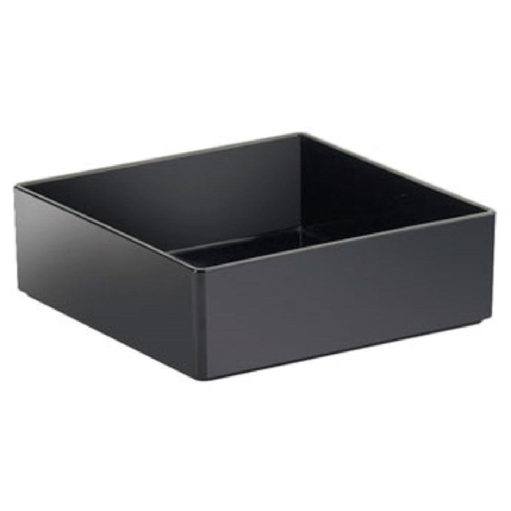 The Cal-Mil 1393-13M Cater Choice Box is a meticulously designed square container measuring 10 inches in width, 10 inches in depth, and 3 inches in height. Crafted from durable melamine, this box is finished in an elegant black, making it both a practical and stylish choice for various catering needs. Its compact size ensures it fits seamlessly into different settings, from intimate gatherings to larger events, providing a reliable solution for food display and service. The versatility of the Cal-Mil 1393-13M lies in its ability to cater to a wide array of segment markets within the food service industry, offering a unique value proposition for caterers, restaurants, and hospitality services that require both functionality and aesthetic appeal. The melamine construction not only adds strength and longevity but also simplifies cleaning and maintenance processes, ensuring it withstands the rigors of regular use while maintaining a pristine appearance. This product exemplifies a harmonious blend of form and function, making it an essential component in enhancing presentation and service efficiency.