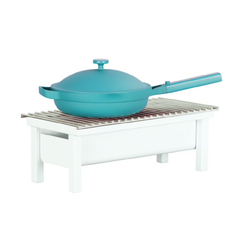 The Cal Mil 1409-22-15 Juno Chafer Alternative is a meticulously designed piece of equipment, measuring 19.74 inches in width, 10 inches in depth, and 7 inches in height. Crafted from white metal, this chafer alternative is not only durable but also aesthetically pleasing, making it suitable for a variety of settings from high-end catering events to bustling buffet lines. The inclusion of a wire grill and a fuel cell rail equipped with a wind guard ensures stable and efficient heating, making it an excellent choice for those seeking reliable performance in outdoor or drafty environments. The thoughtful construction of the Cal Mil 1409-22-15 makes it an adaptable solution for professionals in the hospitality industry, providing a unique value proposition with its blend of functionality and design. Its robust construction promises longevity, while the sleek white finish adds a touch of elegance, catering to both form and function. Whether used in upscale dining establishments or casual catering scenarios, the Cal Mil 1409-22-15 stands out as a versatile and dependable option for food service professionals looking to enhance their service presentation with a touch of class and reliability.