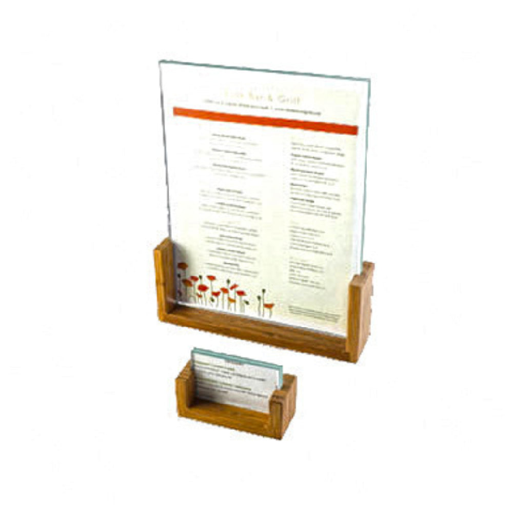 The Cal-Mil 1510-32-60 Menu/Card Holder is a meticulously designed display accessory, measuring 3-1/2 inches in width and 2 inches in height, ideal for a variety of industry settings such as restaurants, cafes, or event spaces. The U-frame design ensures stability and ease of use, allowing for quick insertion and removal of menus or cards. Its acrylic insert provides a clear and durable display medium, enhancing visibility while maintaining a sleek, modern appearance. Complemented by a bamboo base, this holder merges sustainability with functionality, offering an eco-friendly touch that aligns with contemporary environmental standards. The product's BPA-free construction underscores its safety and health-conscious design, making it suitable for settings that prioritize consumer well-being. This menu/card holder is a practical choice for establishments looking to combine aesthetic appeal with durable functionality.