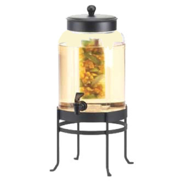 The Cal Mil 1580-2INF-13 SoHo Beverage Dispenser is a versatile and stylish solution for serving refreshing drinks in various settings. With a 2-gallon capacity, it is ideal for catering to small gatherings or supplementing beverage stations in larger events. The dispenser measures 10 inches in width, 12 inches in depth, and stands 20-1/2 inches high, making it a compact yet substantial addition to any service area. It features an infusion chamber, which allows for adding fruits or herbs to infuse beverages with flavors, enhancing the drink experience for guests. The unit is equipped with a spigot for easy dispensing and a drip tray to manage spills, ensuring cleanliness and convenience. The dispenser's black frame adds a touch of elegance and modernity, while the glass construction offers a clear view of the beverage, enticing guests and allowing for easy monitoring of levels. Additionally, it is BPA-free, ensuring safety and quality in beverage presentation. The Cal Mil 1580-2INF-13 SoHo Beverage Dispenser is a valuable asset for hotels, restaurants, and event venues, combining functionality with aesthetic appeal to enhance any beverage service setup.