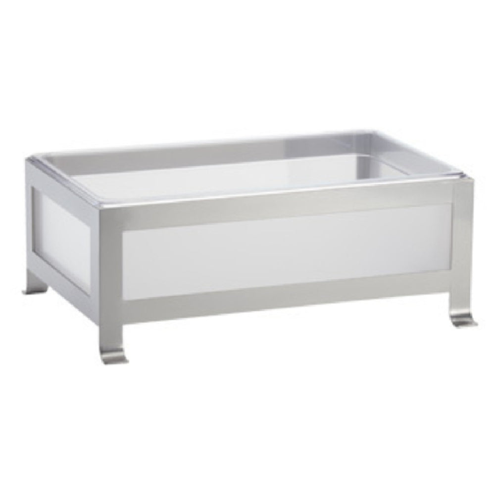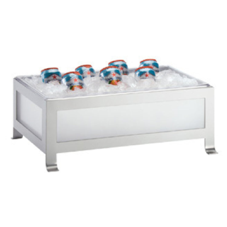 The Cal Mil 1582-12-33 SoHo Ice Housing is designed with a clear polycarbonate pan measuring 12 inches wide, 21 inches deep, and 8-1/4 inches high, offering a spacious and transparent chamber for optimal visibility of its contents. The clear frosted sides contribute to a sleek presentation, making it an excellent choice for showcasing ice displays in a variety of settings. Supported by a powder-coated silver steel frame, this ice housing combines durability with a modern aesthetic, ensuring it withstands the demands of frequent use while maintaining a stylish appearance. Ideal for catering events, restaurants, and hotels, the Cal Mil 1582-12-33 provides versatility and functionality, accommodating different needs within the hospitality industry. Its robust construction ensures longevity, while the clear design emphasizes the product's contents, enhancing the visual appeal of any presentation. Whether used for chilling beverages or displaying seafood, this ice housing unit meets diverse market needs with its practical design and reliable framework. Its blend of form and function makes the Cal Mil 1582-12-33 a valuable asset for any professional establishment looking to elevate their service presentation with a dependable and attractive ice housing solution.