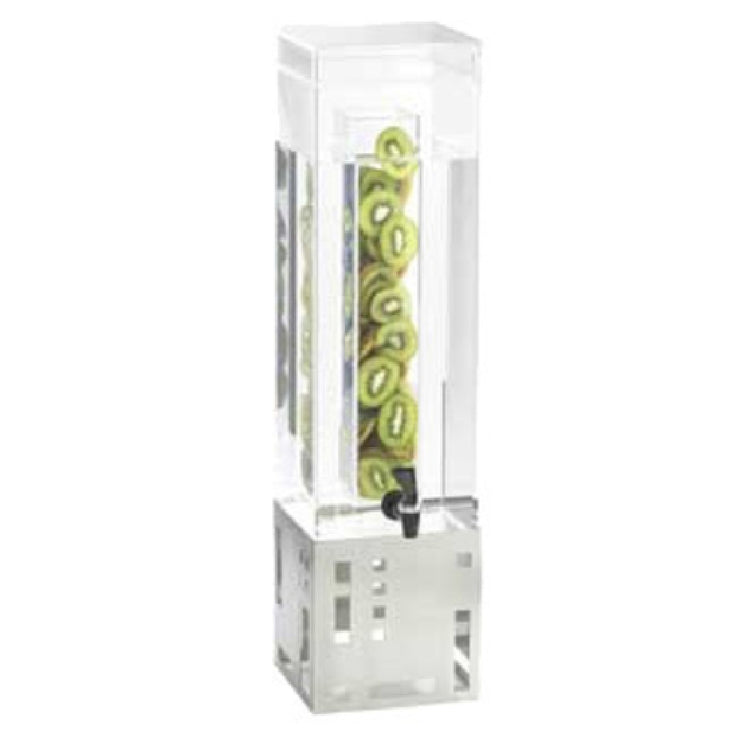 The Cal Mil 1602-3INF-55 Squared Beverage Dispenser is a sophisticated addition to any beverage service setup, boasting a generous 3-gallon capacity ideal for accommodating large gatherings or events. Its dimensions of 7-1/2"W x 9-1/2"D x 25-3/4"H make it a compact yet formidable presence on any countertop. Designed with an infusion chamber, this dispenser allows for the seamless integration of flavors, providing a unique beverage experience. The inclusion of a spigot ensures easy and controlled pouring, while the drip tray minimizes mess and enhances cleanliness. Featuring decorative geometric cutouts, this dispenser not only functions optimally but also adds an aesthetic appeal. The stainless steel base offers a sturdy and durable foundation, ensuring the dispenser's longevity and reliability in high-traffic environments. Importantly, the Cal Mil 1602-3INF-55 is BPA Free, underscoring a commitment to health and safety standards, making it a preferred choice for establishments prioritizing client well-being. This dispenser is particularly valuable for hospitality environments, catering services, and corporate functions seeking a blend of style, functionality, and safety in their beverage service equipment.