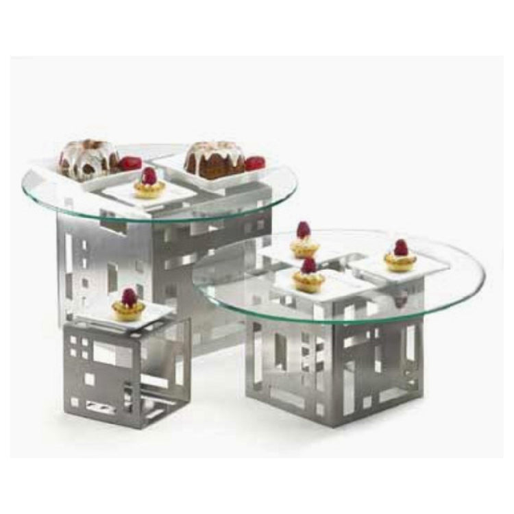 The Cal-Mil 1607-9-55 Squared Cube Riser 9"W Decorative Geometric Cutouts is a distinctive display solution known for its aesthetic appeal and functional design. This riser features exacting geometric cutouts, crafted meticulously into its stainless steel structure, making it both a durable and visually appealing addition to any display setting. The riser measures a precise 9 inches in width, offering a perfect balance of size and stability, suitable for a range of applications across different market segments such as hospitality, catering, and retail. The stainless steel construction ensures long-lasting durability and resistance to wear, making it ideal for environments that demand high-quality and robust materials. While glass tops are not included, the riser's design accommodates various customization options to enhance presentation and display versatility. The Cal-Mil Squared Cube Riser serves not just as a structural element, but as a stylish focal point, elevating the presentation of featured items in any setting. Its unique geometric cutouts add a modern touch, making it a valuable and functional asset for businesses looking to enhance their display aesthetics with a product that balances form and function seamlessly.