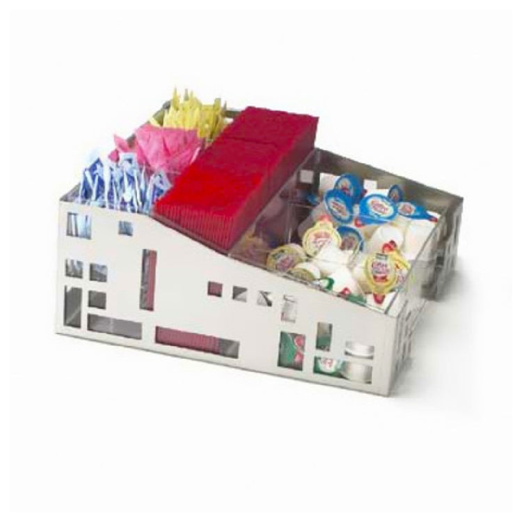 The Cal Mil 1616-55 Squared Condiment Organizer is a meticulously designed storage solution tailored for efficient condiment management, especially in hospitality and food service environments. Measuring 12 inches in width, 12 inches in depth, and 5-1/4 inches in height, this organizer offers compact yet ample storage with its nine separate compartments. Each compartment is designed to accommodate a variety of condiment packets, stirrers, and other small items, facilitating organized and quick access. The organizer is constructed from durable stainless steel, ensuring longevity and resistance to wear and tear in high-traffic areas. Its decorative geometric cutouts not only enhance its aesthetic appeal but also add a modern touch that complements contemporary décor styles. This organizer is particularly suited for use in cafes, restaurants, office break rooms, and catering setups, offering versatility across different segment markets within the food service industry. The Cal Mil 1616-55 Squared Condiment Organizer's combination of practical design, durable materials, and stylish presentation underscores its unique value proposition, making it an essential item for maintaining an orderly and attractive condiment display.