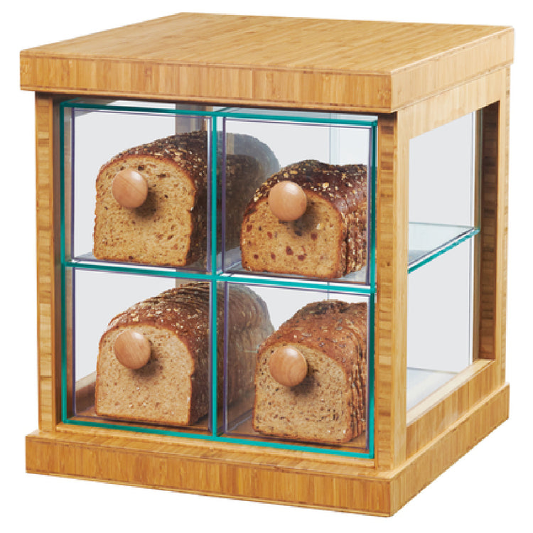 Cal-Mil 1718-60 Bread Case is a versatile and compact solution designed for efficient self-service in various commercial settings. Measuring 16-1/2"W x 15"D x 15"H, this 2-tier bread case is ideal for small to medium-sized establishments that prioritize space management while maintaining product accessibility. The unit features four drawers, each equipped with convenient handles, allowing for easy access and organization of different bread varieties. Constructed with a clear acrylic exterior, it provides excellent visibility, enabling customers to quickly identify their desired products while maintaining freshness. The bamboo frame adds a touch of elegance and sustainability, catering to environmentally conscious businesses. This bread case is BPA free, ensuring that it meets health and safety standards, making it suitable for food service environments. Its thoughtful design caters to a range of market segments, from small cafes and bakeries to larger buffet-style operations, offering a blend of functionality and aesthetic appeal. The Cal-Mil 1718-60 Bread Case is an ideal choice for any establishment seeking a reliable, space-efficient solution that seamlessly integrates into various settings, enhancing both customer experience and operational efficiency.