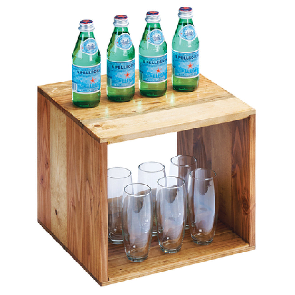 The Cal Mil 1929-12-99 Madera Library Cube Riser, with its dimensions of 12"W x 12"D x 12"H, offers a versatile and rustic display solution crafted from high-quality rustic pine. This cube riser is designed to enhance presentation aesthetics across various market segments, from retail displays to culinary presentations. Its robust construction provides reliable support for a range of items, highlighting its adaptability in different settings. The Madera Library Cube Riser's rustic pine finish imbues a warm, natural look that complements both contemporary and traditional decor styles, making it a flexible addition to any display strategy. Its dimensions make it suitable for use as a standalone piece or as part of a larger, modular display system. The cube riser's durable build ensures longevity, a valuable feature for businesses seeking sustainable and long-lasting display solutions. Ideal for creating varying height levels in presentations, this riser adds depth and interest to visual merchandising setups. Its design not only serves practical purposes but also enhances the visual appeal of items showcased, making it an essential tool for professionals in retail, hospitality, and event planning industries looking to elevate their presentation techniques with a touch of rustic elegance.