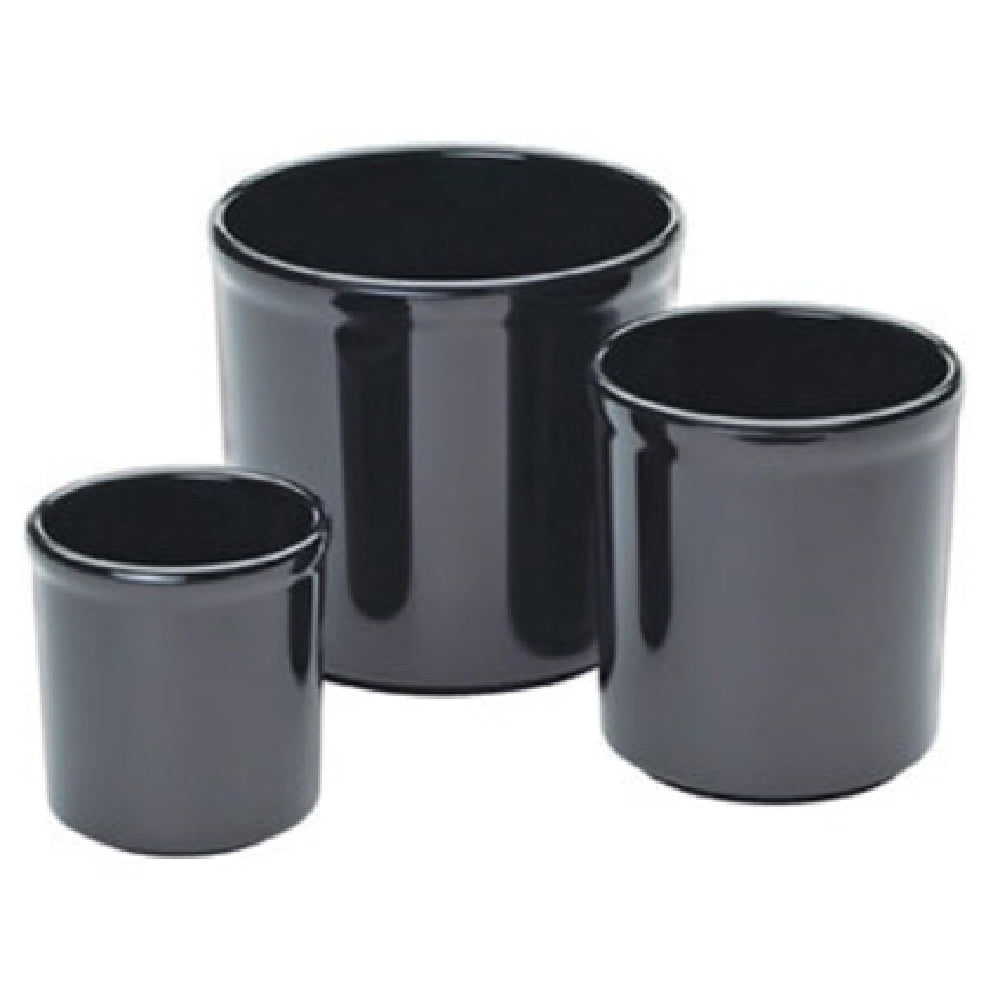 The Cal Mil 1950-32-13 Crock is a versatile and durable solution for various food service environments, boasting a 32 oz capacity, making it suitable for a variety of serving needs. With a diameter of 5 inches and a height of 5-1/2 inches, this crock is compact yet spacious enough to accommodate a range of food items. Crafted from high-quality melamine, the crock is not only robust but also resistant to breakage, making it ideal for both high-traffic commercial kitchens and daily household use. Its elegant black color adds a touch of sophistication, ensuring it complements any table or buffet setting. The round design enhances the ease of serving and mixing, while the melamine construction ensures it is lightweight and easy to handle. This crock is perfect for use in salad bars, catering events, and restaurants looking to present their dishes stylishly. The Cal Mil 1950-32-13 Crock stands out in the industry for its blend of functionality and aesthetics, providing a reliable serving solution that meets the demands of diverse market segments, from professional chefs to home entertainers. Whether used for presenting cold dishes or as part of a buffet setup, this crock delivers on both utility and style.