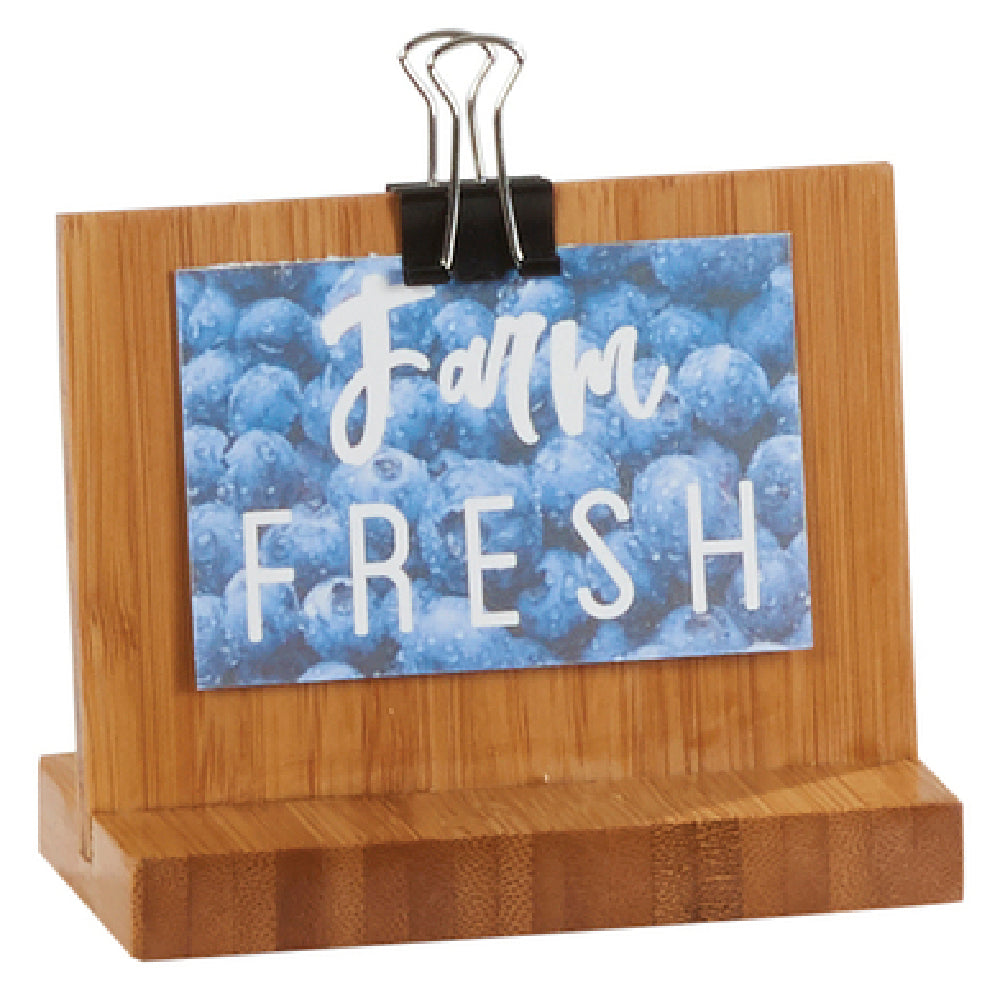The Cal Mil 2036-32-60 Clipboard Menu is a compact and versatile display solution designed for efficient menu presentation. Measuring 4 inches in width, 2 inches in depth, and 3-1/4 inches in height, this rectangular clipboard is engineered to hold a 3-inch by 2-inch card, making it perfect for displaying concise information in a stylish manner. The clipboard features a flared base for enhanced stability, allowing it to stand firmly on surfaces without tipping over. Double-sided functionality ensures visibility from both sides, maximizing its use in dynamic environments such as cafes, restaurants, and hospitality settings. The included clip secures the card in place, maintaining a neat and organized appearance at all times. Crafted from bamboo, this clipboard not only offers a natural aesthetic appeal but is also BPA-Free, ensuring safety and environmental consciousness. Its blend of elegant design and practical functionality makes it an ideal choice for establishments aiming to enhance their presentation and customer interaction. Whether used for showcasing daily specials, promotional information, or customer feedback forms, the Cal Mil 2036-32-60 Clipboard Menu serves as an effective tool for businesses seeking to communicate effectively with their patrons.