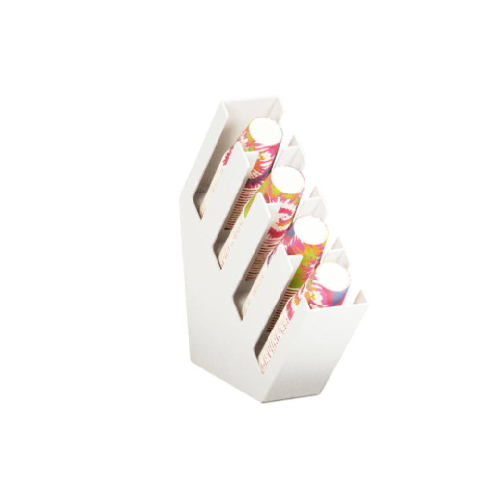 - Organizes cups and lids efficiently