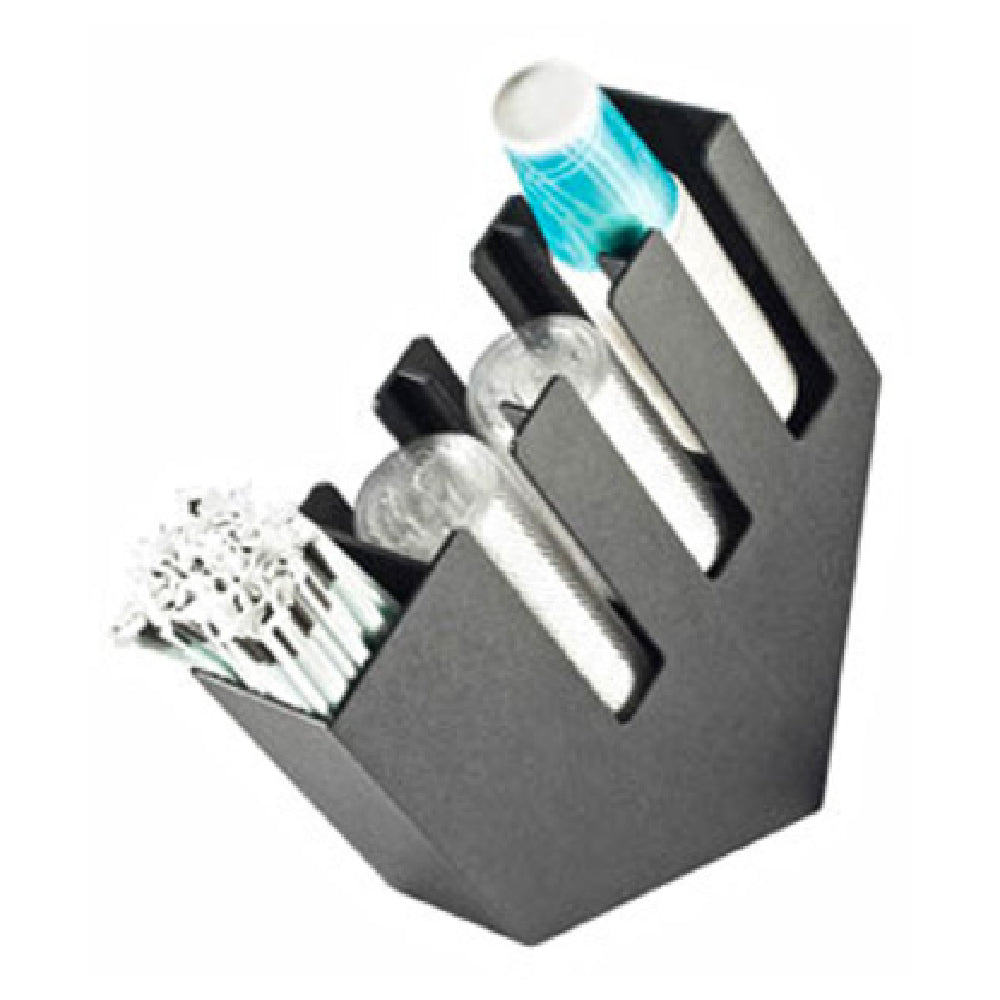 The Cal Mil 2051 Classic Cup/Lid & Straw Holder is a meticulously designed storage solution measuring 4-3/4"W x 20"D x 20"H. This versatile holder is divided into four sections, each capable of accommodating cups and lids up to 4 inches in diameter. Constructed from durable ABS plastic, this holder is finished in a sleek black color, making it a stylish and practical addition to any commercial setting. Its compact yet efficient design is ideal for various industry segments, including food service, hospitality, and office environments, where organized and accessible storage of beverage accessories is essential. The Cal Mil 2051 is especially beneficial for cafes, restaurants, and catering businesses that require an orderly presentation of drinkware components, enhancing the customer experience through streamlined self-service. The robust ABS plastic construction ensures longevity and easy maintenance, catering to high-traffic areas and frequent use. This holder not only maximizes space efficiency but also contributes to a neat and tidy beverage station, thus supporting operational efficiency and cleanliness. With its thoughtful design and practical features, the Cal Mil 2051 Classic Cup/Lid & Straw Holder stands out as a valuable asset for organizations looking to optimize their beverage service setup.