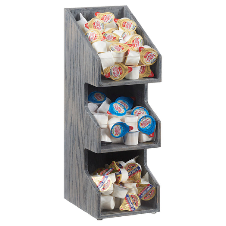The Cal Mil 2053-83 Ashwood Condiment Organizer/Display is a versatile and elegant solution for organizing and displaying condiments in various settings, including restaurants, cafes, and catering events. Measuring 5-1/2 inches in width, 6-1/2 inches in depth, and 15-1/2 inches in height, this three-tier organizer maximizes space efficiency while ensuring easy access to condiments. Its clear acrylic edges provide a contemporary look, allowing the contents to be easily visible, which is essential for quick service and convenience. The organizer is constructed from oak wood with a stylish gray wash finish, adding a touch of sophistication to any countertop or serving station. Additionally, it is BPA free, ensuring safety and reliability in food service environments. The unique combination of durable materials and thoughtful design elements makes the Cal Mil 2053-83 not only a functional piece but also a stylish accent that complements modern and rustic decor alike. This product is particularly suited for hospitality businesses looking to enhance their service area with an organized, aesthetically pleasing solution, while also being a practical choice for office break rooms and home use where organization and presentation are equally valued.