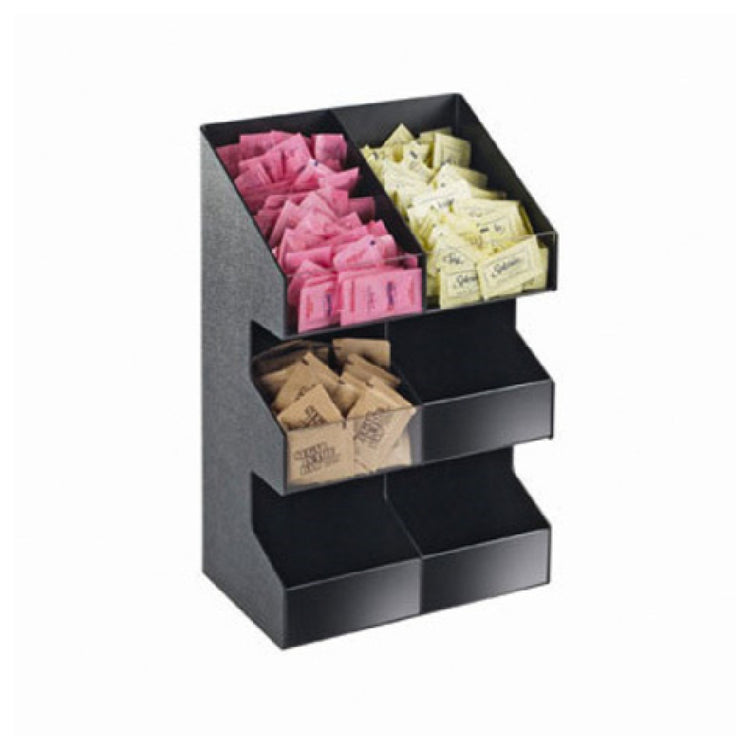 The Cal Mil 2054 Classic Condiment Organizer/Display is a versatile and practical solution for organizing and displaying condiments, enhancing the efficiency and aesthetics of any food service environment. Measuring 10-1/4 inches in width, 6-3/4 inches in depth, and 16 inches in height, this condiment organizer is designed to fit conveniently in compact spaces while offering ample storage across its three-tier bins. The double tower design optimizes vertical space, making it suitable for various settings, from bustling cafeterias to intimate cafes. Crafted with a clear acrylic face, it provides visibility and easy identification of contents, ensuring quick access for users. The ABS-plastic construction in a chic black finish adds durability and a contemporary touch, making it a reliable and stylish choice for different segments across the hospitality industry. This organizer caters to the nuanced needs of food service professionals who require efficient condiment management without compromising on style or space. Whether in a self-service station or behind the counter, the Cal Mil 2054 Classic Condiment Organizer/Display stands out for its thoughtful design and robust build, making it a valuable asset in maintaining an organized and appealing service area.