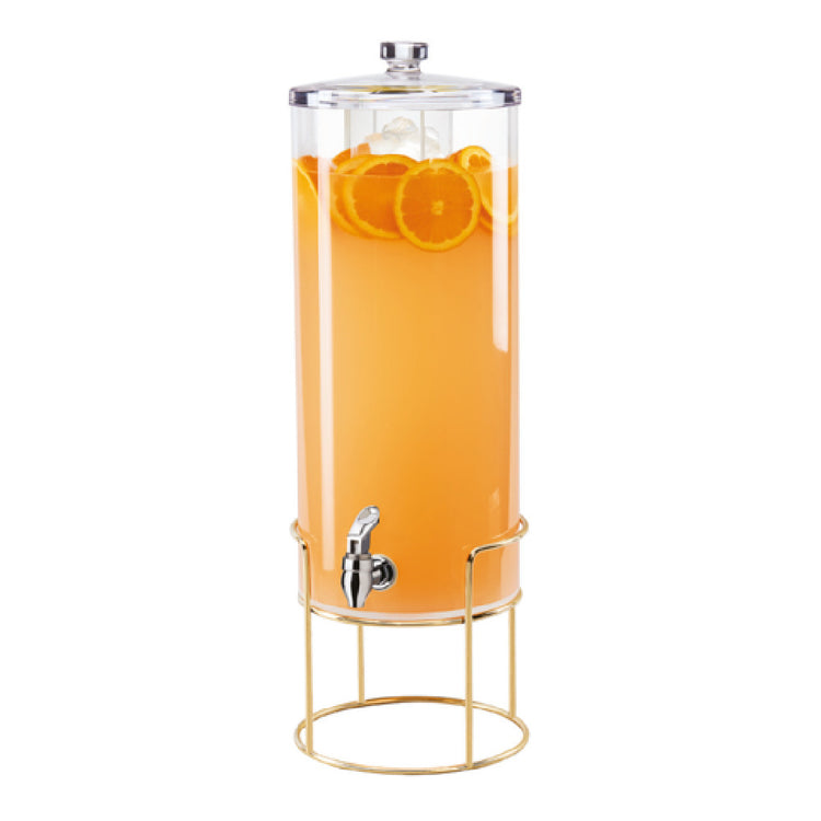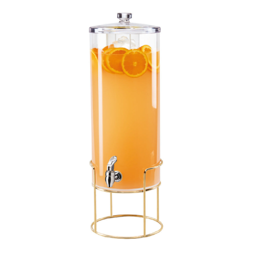The Cal Mil 22005-5INF-46 Beverage Dispenser is a versatile and practical solution with a 5-gallon capacity, making it suitable for both large events and everyday use. Its dimensions - 10"W x 12-1/5"D x 32"H - and round shape offer a compact yet substantial presence, fitting comfortably in various settings. This beverage dispenser includes a unique infusion chamber, allowing users to enhance their drinks with fresh flavors naturally. A drip tray is incorporated to maintain cleanliness and prevent spills, ensuring a tidy serving area. The brass wire base not only adds a touch of elegance but also provides sturdy support and stability. Made with BPA-free materials, this dispenser prioritizes safety and health standards. Its thoughtful design caters to a wide range of users, from catering services and hotels to businesses hosting corporate events. The Cal Mil 22005-5INF-46 Beverage Dispenser combines functionality with aesthetic appeal, making it an excellent choice for those seeking to serve beverages in a stylish, efficient manner. This product stands out with its combination of capacity, safety, and infusion capabilities, offering a unique value for various industries such as hospitality and event planning.