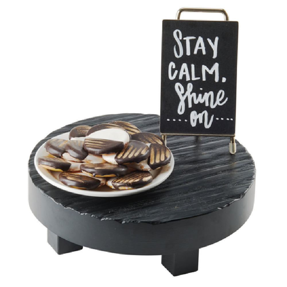 The Cal Mil 22022-13 Monterey Riser 12" Dia. x 4"H Round is a meticulously crafted product ideally suited for the food service and catering industries. With its dimensions of 12 inches in diameter and a height of 4 inches, this round riser is designed to provide both functionality and aesthetic appeal in any presentation setting. Made from black wood, this riser combines durability with a sleek, modern look, making it a versatile choice for a variety of market segments, including restaurants, hotels, and event venues. Its sturdy construction ensures it can reliably support a range of display items, enhancing the visual impact of any culinary presentation. The use of wood not only adds an element of sophistication but also makes it a sustainable choice for environmentally conscious businesses. The Cal Mil 22022-13 Monterey Riser is perfect for elevating dishes, creating a dynamic and tiered display that draws attention and adds depth to any table setup. Whether used for buffet settings, banquet services, or retail displays, this riser is an excellent accessory that meets the demands of style and practicality, making it an essential tool for professionals looking to enhance their display capabilities.