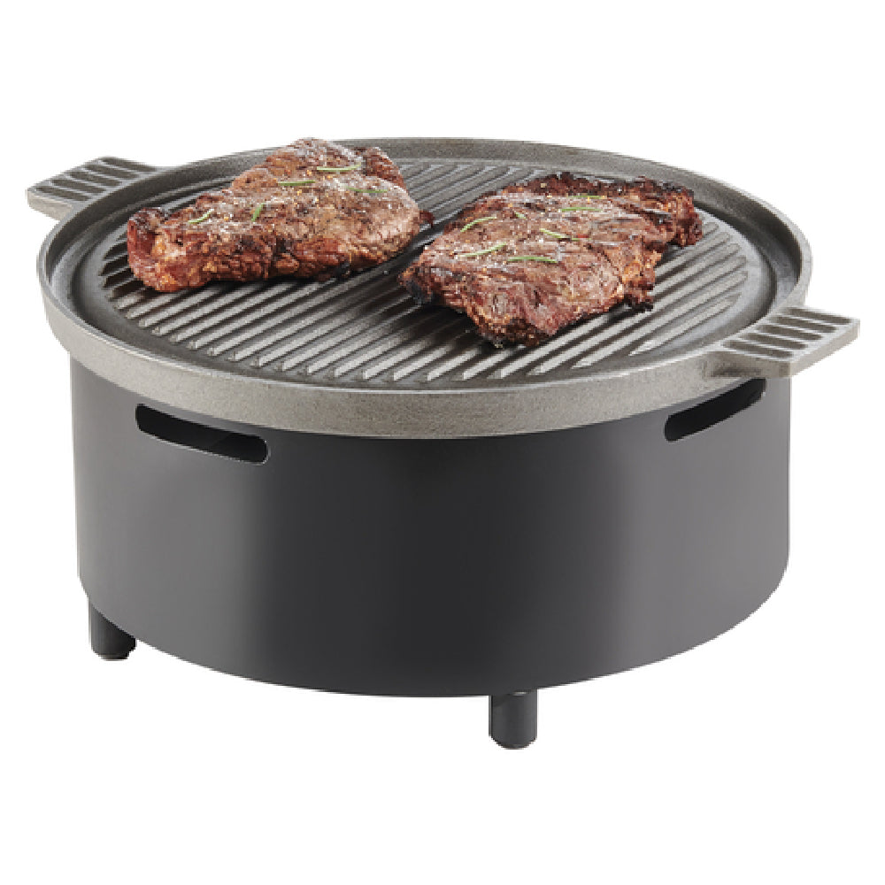 The Cal Mil 22031-13 Chafer Alternative 16-3/4" Dia. X 7-1/2"H Round is a versatile and efficient serving solution designed to enhance food presentation across various service settings. This product features a diameter of 16-3/4 inches and a height of 7-1/2 inches, providing ample space for serving a variety of dishes. Its round shape is aesthetically pleasing, making it suitable for both casual and formal dining environments. The chafer alternative includes a wire grill and skillet, both integral components that support diverse culinary applications, ensuring that food is kept warm and presentable. Finished in black, this product offers a sleek and modern appearance that seamlessly fits into any décor, making it a practical choice for caterers, hotels, and restaurants seeking to elevate their buffet or dining service. The Cal Mil 22031-13 is designed with functionality and style in mind, meeting the demands of professional foodservice operations by combining practicality with visual appeal. Its durable construction ensures longevity and reliability, catering to the needs of industry professionals looking for a dependable serving solution.