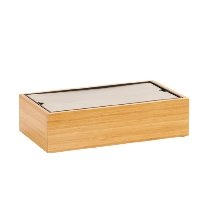 The Cal Mil 22072-4-60 Cold Concept Frame is a precisely engineered product, measuring 9-1/2 inches in width, 17-3/4 inches in depth, and 4-3/4 inches in height. This versatile frame includes a stainless steel tray and is equipped with cold pucks, enhancing its functionality for maintaining optimal temperature conditions. Made with bamboo, the Cal Mil 22072-4-60 offers an eco-friendly and aesthetically pleasing option for various settings. Its design caters to the needs of restaurants, catering services, and food presentation venues that require efficient cold storage solutions. The Cold Concept Frame stands out for its blend of sustainability and practicality, providing a robust solution for cold food display and storage, crucial for buffet lines and self-serve stations. The combination of bamboo and stainless steel not only adds durability but also aligns with modern design preferences, making it a fitting choice for contemporary dining environments. Its dimensions and components are specifically tailored to enhance both the functionality and aesthetic appeal, making the Cal Mil 22072-4-60 Cold Concept Frame a valuable addition to any establishment prioritizing effective food presentation and temperature management.