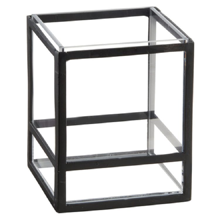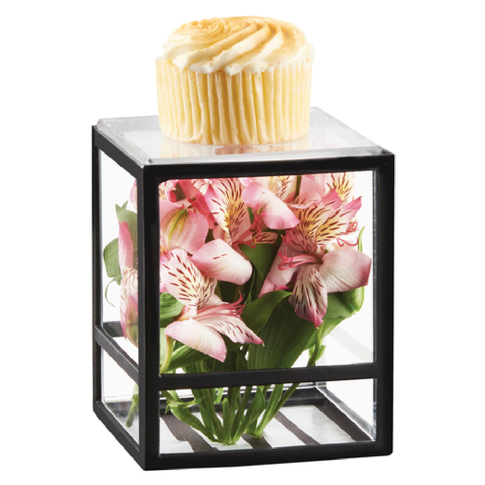 The Cal Mil 22076-13 Presentation Display is a versatile and compact solution for enhancing any countertop setup. With dimensions of 5 inches in width, 5 inches in depth, and 6 inches in height, this square display is designed to suit a variety of presentation needs. Its unique reversible design allows it to function both as a riser and a box, providing flexibility for different display configurations. Constructed from durable plastic and steel, the display ensures longevity and reliable performance in various environments. Its sleek black finish adds a modern touch, blending seamlessly with any decor. This non-refrigerated display is ideal for showcasing items that do not require temperature control, making it suitable for a range of applications across different segments of the food service industry. Whether used in a bakery, café, or retail setting, the Cal Mil 22076-13 Presentation Display combines functionality with style, making it an essential addition for businesses seeking to optimize their presentation capabilities with a compact and efficient tool.
