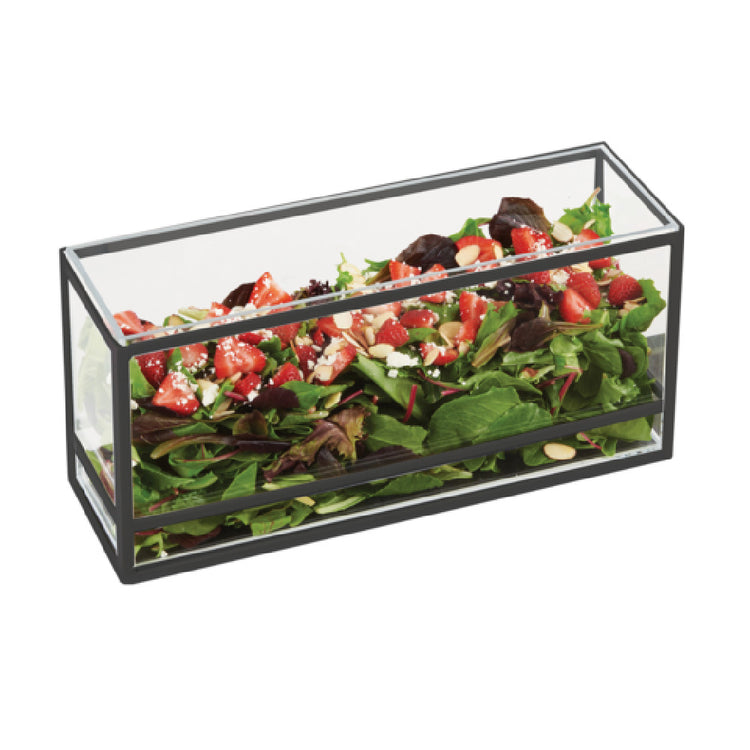 The Cal-Mil 22078-13 Presentation Display is a versatile and robust solution designed for effective countertop presentations. With dimensions of 15"W x 5"D x 7"H, this rectangular display offers ample space for showcasing a variety of items in a professional setting. Its non-refrigerated design makes it a perfect fit for environments where temperature control is not required. The unique reversible design enhances functionality, allowing the unit to be used either as a riser to elevate displays or as a box to contain them. Constructed from a combination of durable plastic and steel, this display ensures longevity and stability, while its sleek black finish offers a modern aesthetic that complements any decor. The Cal-Mil 22078-13 Presentation Display is particularly beneficial for businesses in the retail, hospitality, and event planning sectors, providing a flexible and stylish solution to enhance the visibility of products or promotional materials. Whether used in a bakery, restaurant, or trade show environment, this presentation display stands out as an efficient and adaptable choice for professionals seeking to elevate their display capabilities.