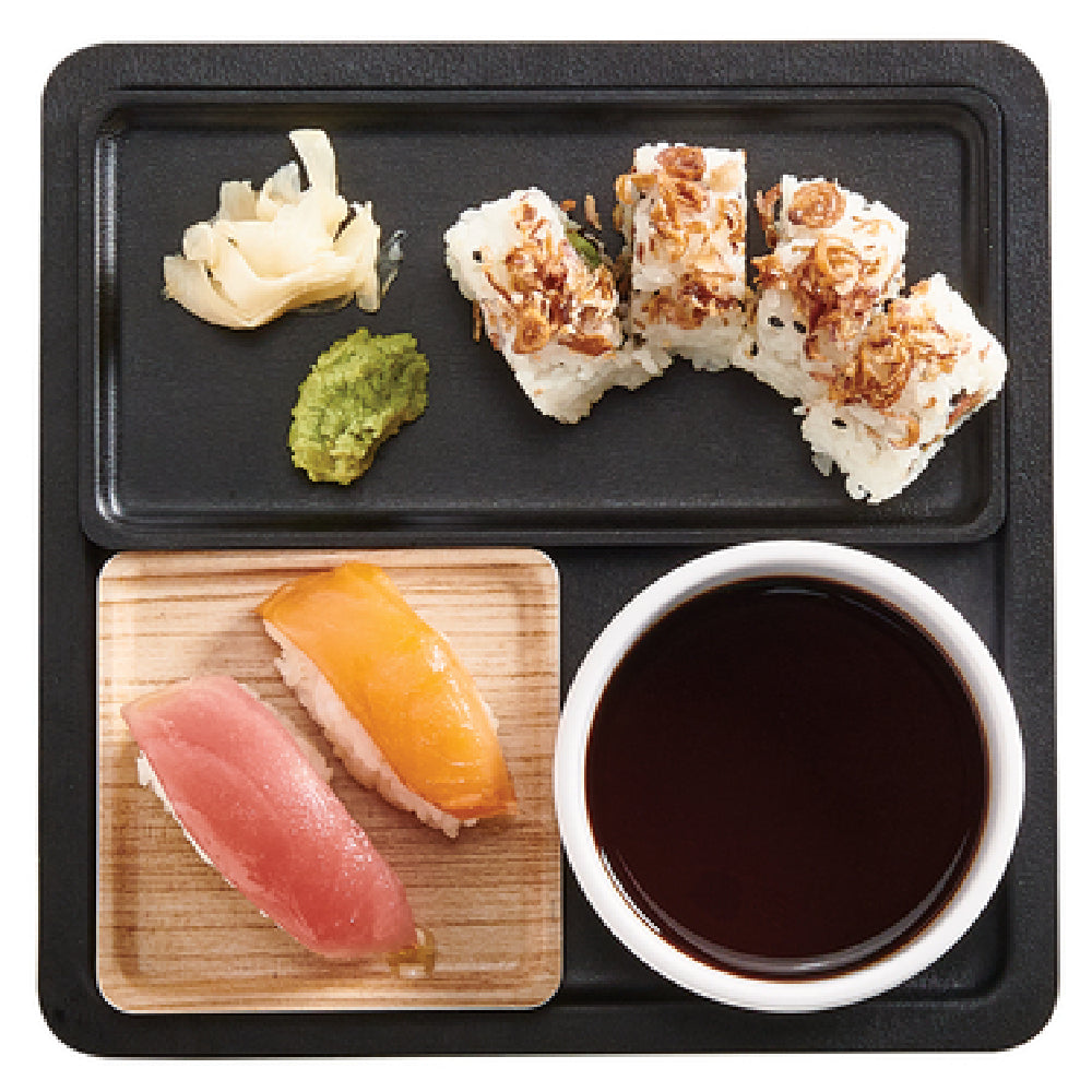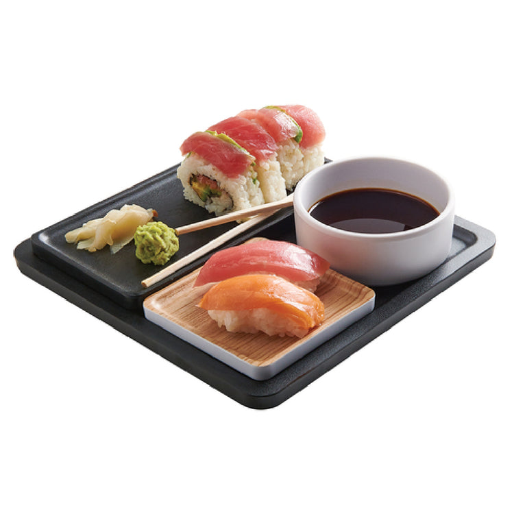 - 9"W x 9"D x 1/2"H stackable serving tray