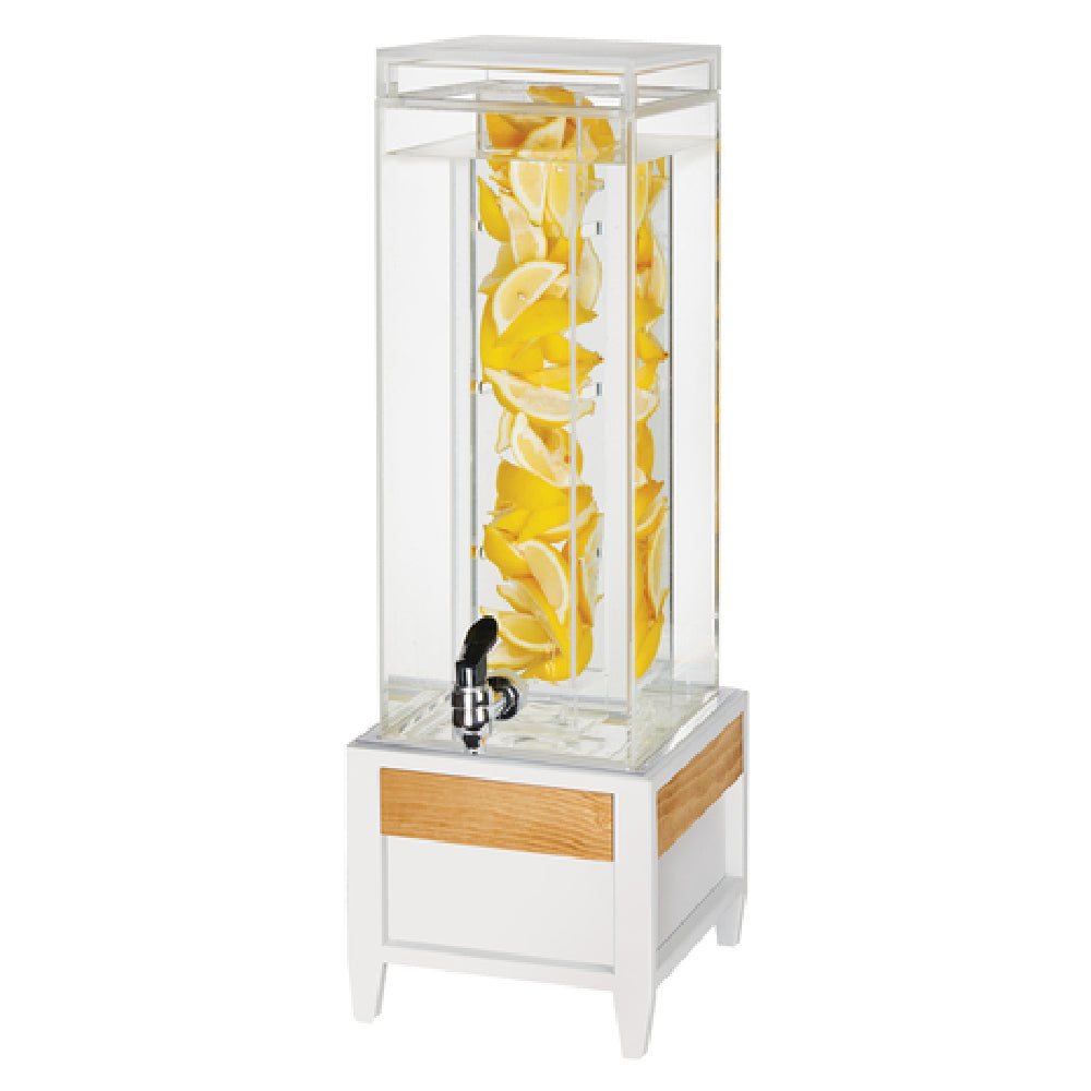 The Cal Mil 22117-3INF-15 Monterey Beverage Dispenser stands out with its generous 3-gallon capacity, making it an ideal solution for catering events, restaurants, and hotel buffets that require efficient beverage service. Its dimensions of 8-1/2" wide by 10" deep and 25-1/2" high offer a compact yet substantial presence on any serving station. This beverage dispenser features an infusion chamber, allowing for the creation of flavored drinks, enhancing the guest experience with custom flavored beverages. Constructed with a durable acrylic body, it ensures longevity while maintaining a clear view of the beverage levels inside. The sheet metal base provides stable support, while the included drip tray minimizes mess and makes cleanup simple. The dispenser is equipped with a user-friendly spigot, ensuring smooth beverage flow and easy access for guests. The Cal Mil 22117-3INF-15 is finished in white, complementing any decor and style with elegance. It is BPA-free, highlighting a commitment to safety and health standards. This dispenser is a versatile and valuable asset for any food service establishment, bringing together functionality, capacity, and style in one sleek package. Its thoughtful design and robust features cater to various segments within the hospitality industry, from large-scale events to intimate gatherings.
