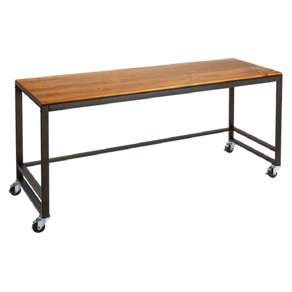 The Cal Mil 22340-72-99 Madera Merchandising Table is a meticulously designed product that caters to a variety of merchandising needs within the industry. Featuring a substantial size of 72"W x 24"D x 34"H, this table provides ample space for showcasing products in an aesthetically pleasing manner. Its rustic pine top shelf not only adds a touch of elegance but also offers a sturdy platform for an array of items, making it ideal for retail spaces that aim to create a cozy, rustic ambiance. The table's metal frame ensures durability and stability, essential for high-traffic environments. Notably, the casters and bottom shelf are sold separately, allowing for customization based on specific display requirements. This flexibility makes the Madera Merchandising Table a versatile solution for different market segments, ranging from boutique stores to larger retail chains. Its design seamlessly combines functionality with style, supporting various display configurations while maintaining a cohesive look. Whether utilized in a home goods store or a fashion retail environment, this table serves as a robust foundation for eye-catching displays, effectively highlighting the products it supports.