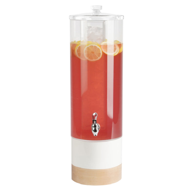 The Cal Mil 22359-3-15 Blonde Beverage Dispenser stands as a versatile solution, catering to varying demands across different market segments within the hospitality and catering industry. With a substantial 3-gallon capacity, this dispenser is designed to efficiently manage medium to large beverage service requirements. Measuring 8" x 11" x 32", it offers a compact yet substantial presence, ideal for buffets, events, or self-service stations. The crystal-clear polycarbonate beverage chamber and lid not only ensure durability but also provide an excellent display for the beverages within, enhancing aesthetic appeal while allowing quick content identification. The inclusion of a spigot facilitates seamless beverage dispensing, optimizing user experience and service speed. The base combines powder-coated metal with maple wood, offering a blend of strength and elegance that complements a variety of settings, from rustic to contemporary. This thoughtful design also ensures stability and support, making it a reliable addition to any service setup. The Cal Mil 22359-3-15 beverage dispenser effectively combines functionality with visual appeal, catering to establishments that require both efficiency and design in their beverage service equipment.