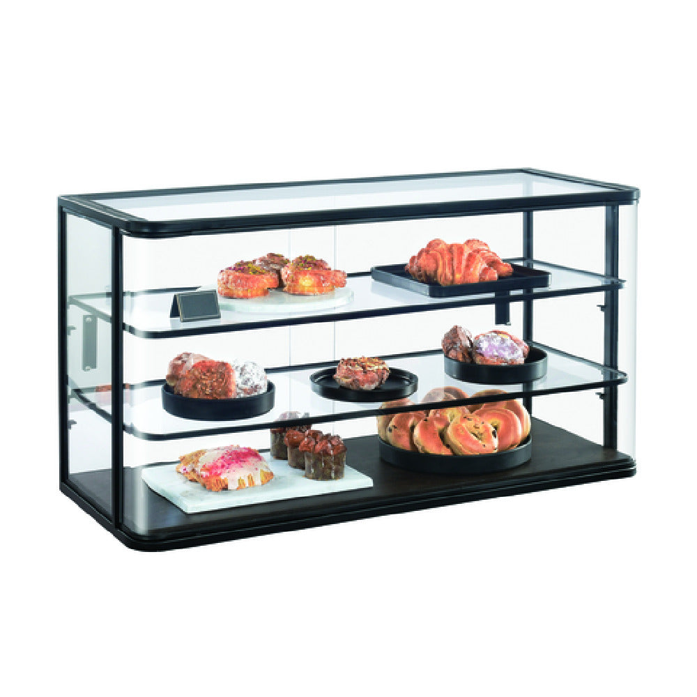 The Cal Mil 22416-112 Heritage Display Case is a meticulously crafted product, measuring 17 inches in width, 42 inches in length, and standing at a height of 23 inches. This ambient display case features three tiers, offering ample space for showcasing a variety of items. Its construction integrates dark-stained oak with black metal, combining an elegant aesthetic with durable materials. Designed for versatility, the display case fits seamlessly into diverse environments, from upscale bakeries to high-end retail stores, providing an attractive presentation that enhances product visibility. The use of dark-stained oak adds a touch of sophistication and warmth, while the robust black metal framework ensures structural integrity and longevity. This combination of materials makes the display case not only a functional piece but also a stylish addition to any setting. The ambient nature of the display case means it is suitable for non-refrigerated items, making it a practical choice for displaying baked goods, pastries, or other ambient products. Whether for a retail space or a hospitality setting, the Cal Mil 22416-112 Heritage Display Case offers both aesthetic appeal and practicality, making it a unique asset to any business looking to exhibit products in a refined manner.