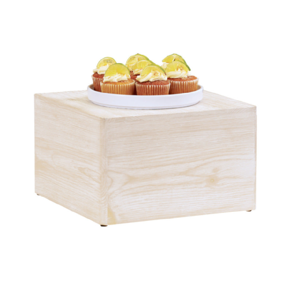 The Cal Mil 22420-6-113 Riser 12"W x 12"D x 6"H Cube is a versatile display solution designed for both aesthetic appeal and functional utility. Crafted from white-washed pine wood, this riser creates a rustic yet sophisticated look that complements a variety of decor styles, making it a valuable addition to any food service or retail environment. Measuring precisely 12 inches in width, depth, and height, the cube shape provides a stable platform for showcasing products, enhancing their visibility and accessibility. The Newport series design ensures that this riser integrates seamlessly with other display pieces, allowing for creative and cohesive presentations. Ideal for catering events, buffet settings, or retail displays, the Cal Mil riser supports diverse segment markets by enhancing product prominence and presentation. Its durable wooden construction not only offers longevity but also adds a touch of natural elegance to any setting. The precise dimensions and quality material make it a practical choice for professionals looking to elevate their display strategies while maintaining a high standard of aesthetic appeal.