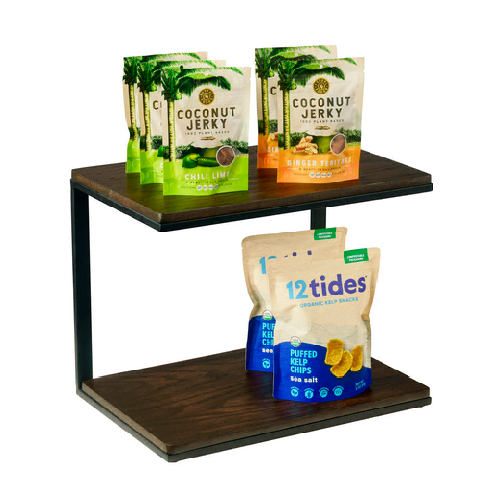 The Cal Mil 22427-112 Heritage Merchandiser 12" x 18" x 14-1/2"H (3) Tier is an elegantly designed display unit tailored for various industry segments that demand both functionality and aesthetic appeal. Crafted from dark stained oak wood, this merchandiser exudes a classic sophistication, enhanced by its robust black frame. Measuring 12 inches in width, 18 inches in depth, and standing 14-1/2 inches high, it provides ample space across its three tiers for showcasing an array of products. The tiered design maximizes visibility and accessibility, making it a versatile choice for any retail environment, from cafes and bakeries to boutiques and gift shops. The combination of dark stained oak and black frame not only adds a touch of style but also ensures durability and stability, supporting the weight of various items with ease. The Cal Mil 22427-112 is an ideal solution for businesses seeking to enhance their product presentation with a display that seamlessly combines efficiency with an inviting aesthetic, making it a valuable asset in both small and large retail spaces looking to optimize their merchandising displays.