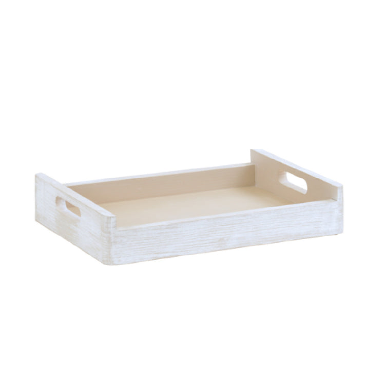 The Cal Mil 22454-1014-113 Accent Tray is a meticulously crafted piece designed for versatile use across various market segments. Measuring 17-1/4"W x 12-1/2"D x 3-1/4"H, this rectangular tray offers ample space and a sturdy design suitable for both commercial and home environments. Constructed from white-washed pine wood, it embodies a rustic yet elegant aesthetic, making it an attractive choice for those in the hospitality industry seeking to enhance their presentation with a touch of natural sophistication. The Newport style of this tray seamlessly integrates into contemporary and traditional settings alike, offering a unique visual appeal that complements a variety of design themes. Its robust construction ensures durability, catering to restaurants, catering services, and event planners who require reliable and stylish serving solutions. The Cal Mil Accent Tray stands out for its ability to combine functionality with aesthetics, serving as a practical tool for delivering an exceptional service experience while also acting as a decorative element. This tray's design and material quality reflect a commitment to high standards, making it a preferred choice for discerning professionals and consumers seeking to elevate their service presentation with a product that embodies both form and function.
