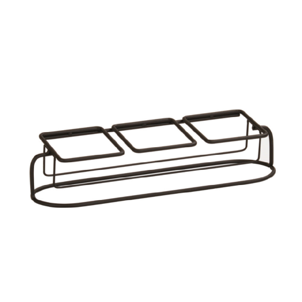The Cal Mil 22802-3-13 3 Jar Display is a versatile and stylish solution for organized storage and display in various professional settings. With precise dimensions of 16-1/2"W x 10"D x 5"H, this display unit is compact yet spacious enough to accommodate different items. It includes three square glass jars, providing an elegant and clear view of the contents. Constructed from black wire, the display is both sturdy and visually appealing, making it suitable for high-traffic environments such as cafes, buffets, or retail spaces. While the lids are sold separately, this modularity allows for customization according to specific needs. The Cal Mil 3 Jar Display is particularly appealing to businesses seeking to enhance their presentation while maintaining an organized and professional appearance. Its design not only maximizes counter space but also allows for easy access and refilling, which is crucial for fast-paced service operations. This product’s robust construction and efficient design make it an invaluable tool for businesses looking to optimize both function and aesthetic appeal in their display solutions.