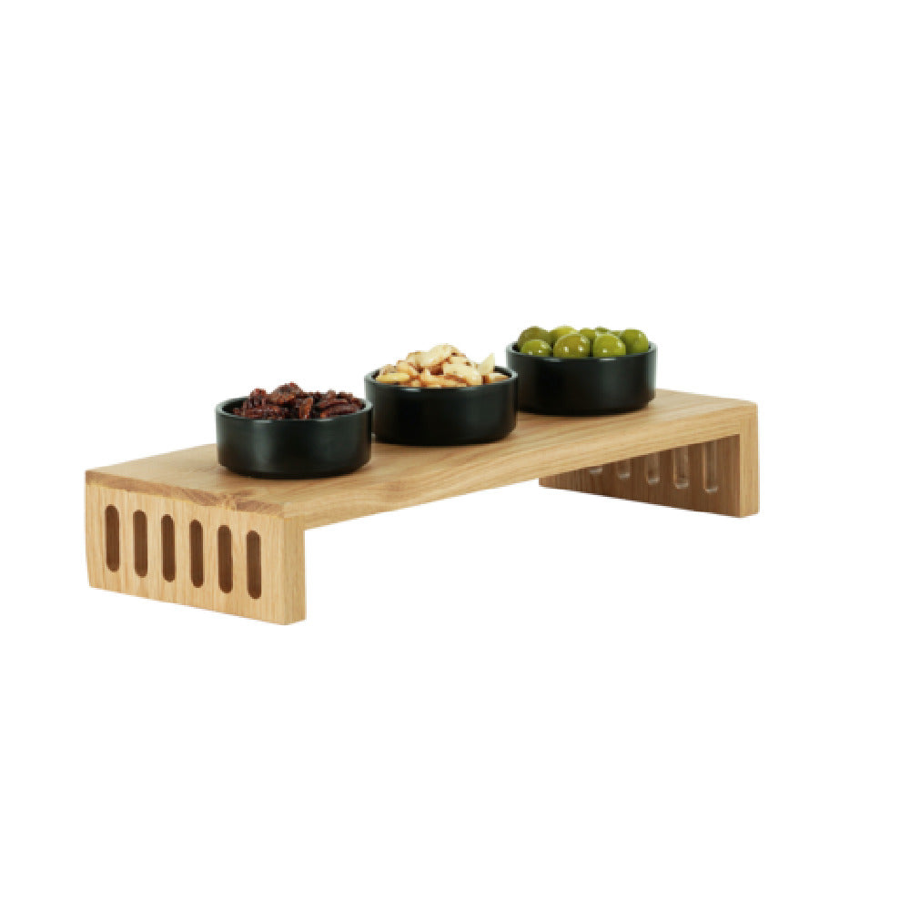 The Cal Mil 23136-1873-21 Sydney Riser is a meticulously crafted display piece with dimensions of 18"W x 7"D x 3"H, made from high-quality oak. This riser presents an ideal solution for showcasing a variety of items in a professional and aesthetic manner. Its robust oak construction not only ensures durability but also adds a touch of elegance to any setting, making it suitable for upscale dining establishments, catering services, or retail environments looking to enhance their presentation. The refined dimensions of this riser allow for versatile usage, whether it's elevating dishes at a buffet, highlighting featured products on a retail countertop, or creating layered displays that add visual interest to your setting. The precision in its design reflects a commitment to quality, providing a stable and reliable platform that can support a range of display needs. The Sydney Riser’s understated yet sophisticated design complements a wide array of decor styles, making it a valuable addition to various market segments seeking to improve display aesthetics and functionality. Its practical size makes it easy to integrate into existing setups without overwhelming the space, offering a seamless blend of form and function in product presentation.